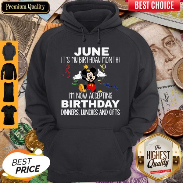 Mickey June It’s My Birthday Month I’m Now Accepting Birthday Dinners Lunches And Gifts Shirt