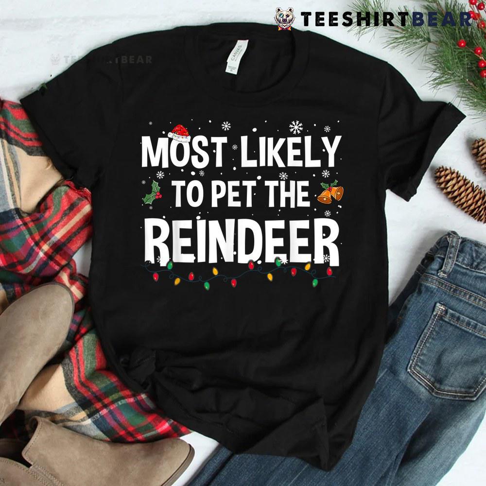 Most Likely To Pet The Reindeer Christmas Family Matching Shirt