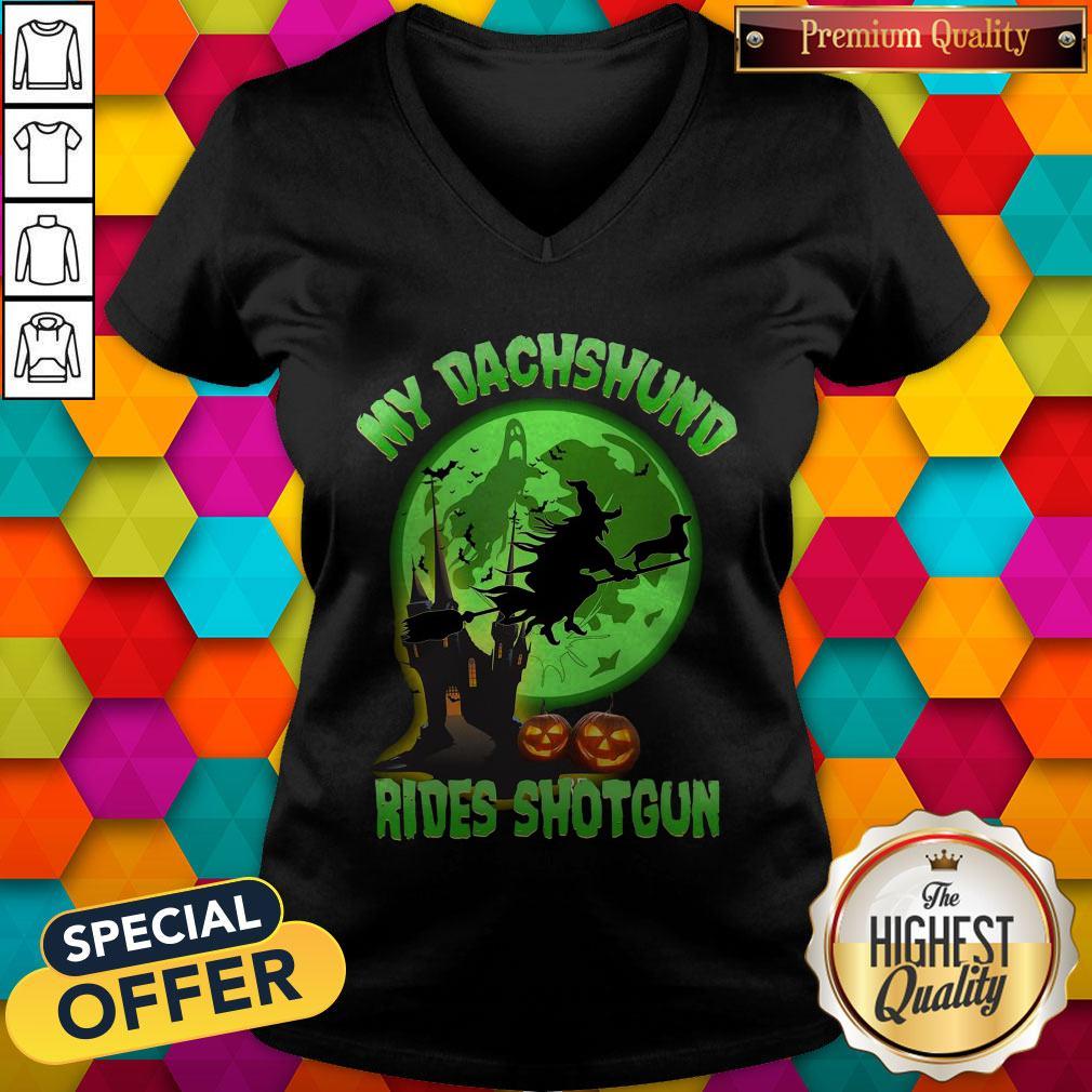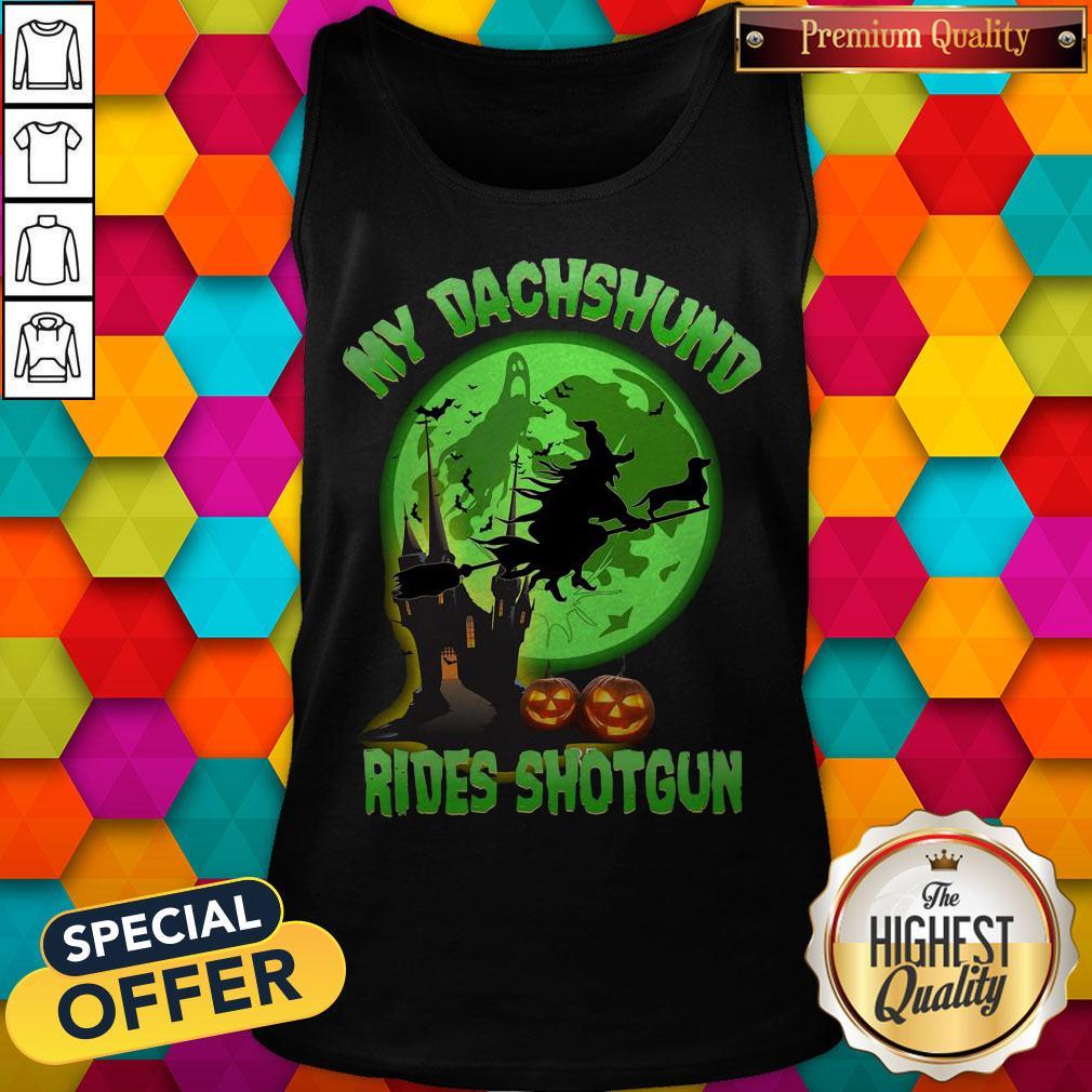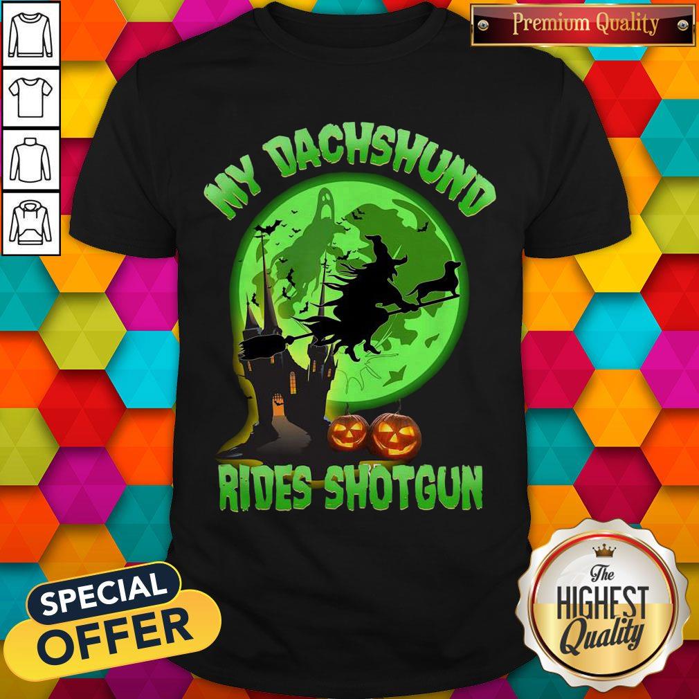 My Dachshund Rides Shotgun Halloween Moon Shirt