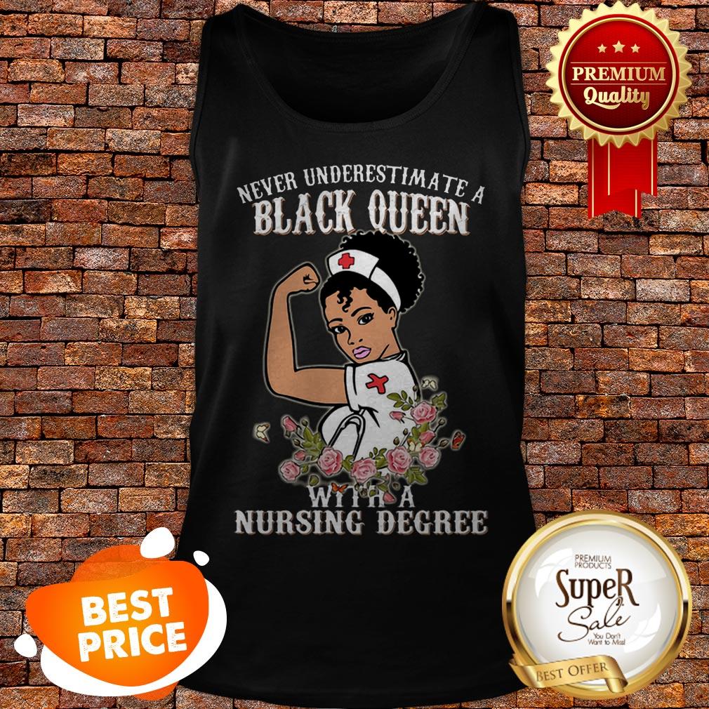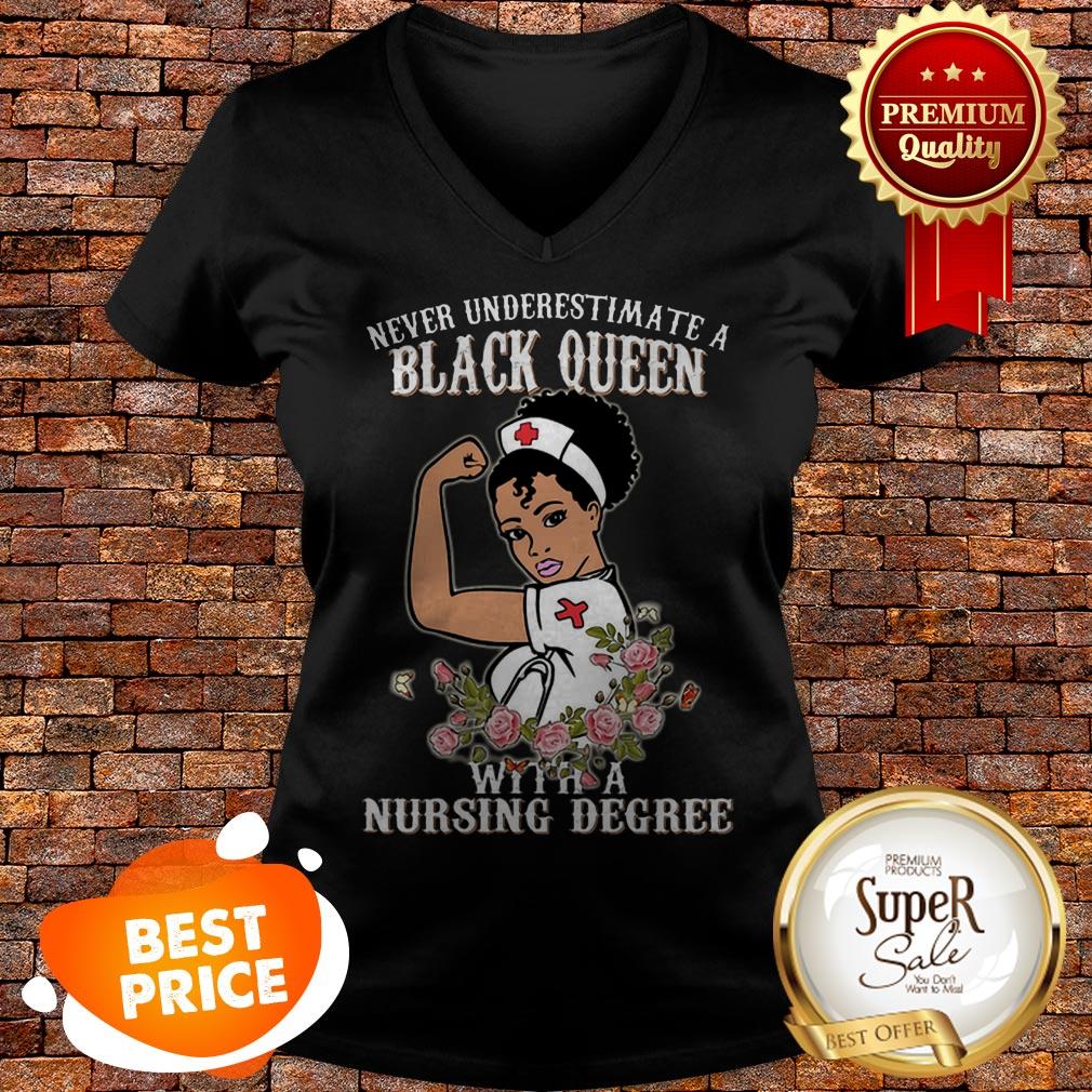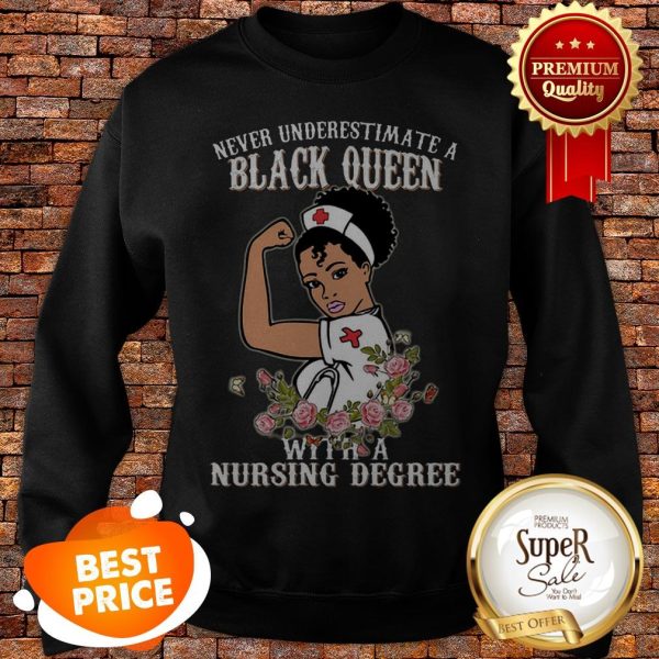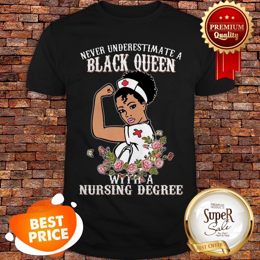 Never Underestimate A Black Queen Flowers With A Nursing Degree Shirt