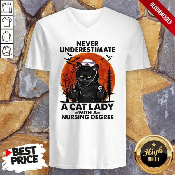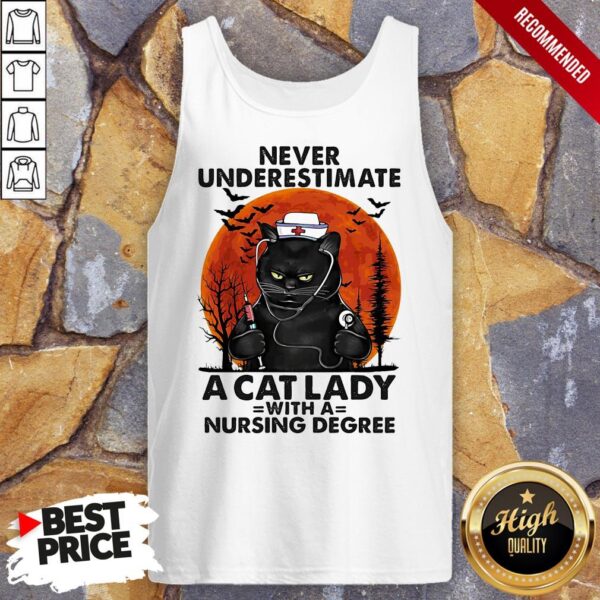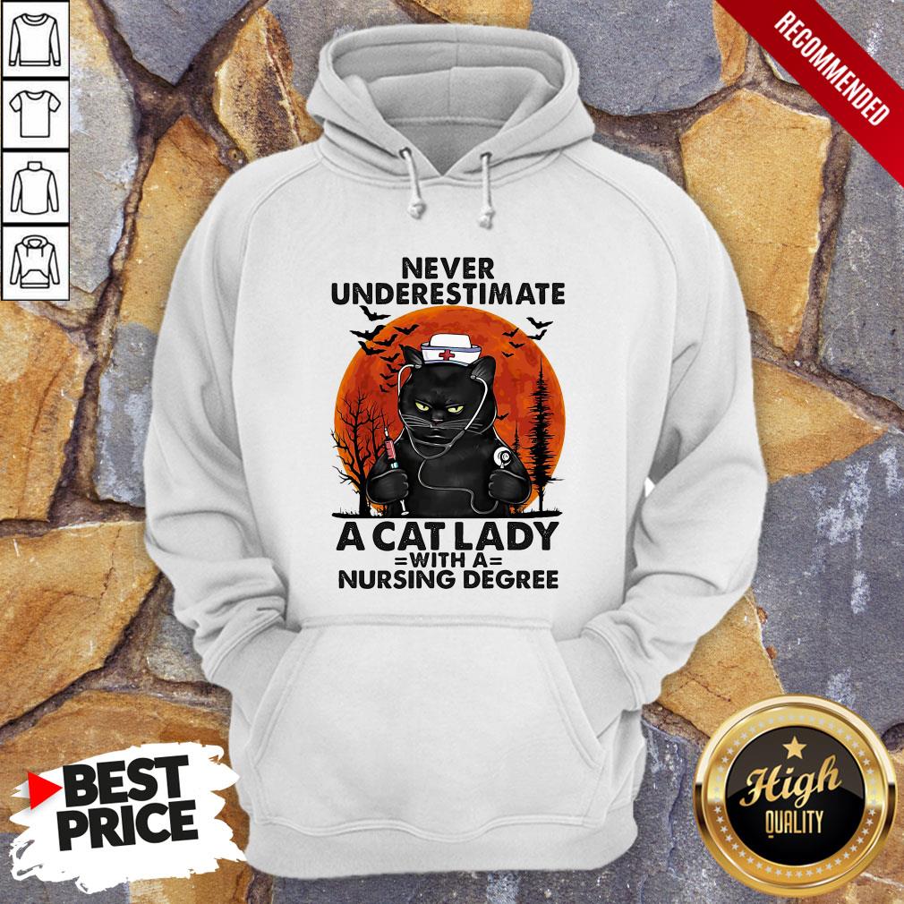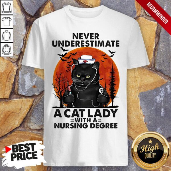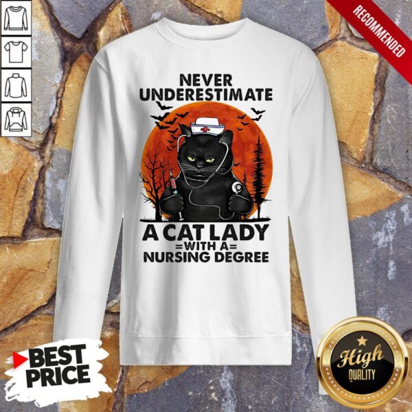 Never Underestimate A Cat Lady With A Nursing Degree Sunset Halloween Shirt