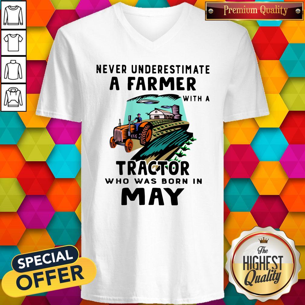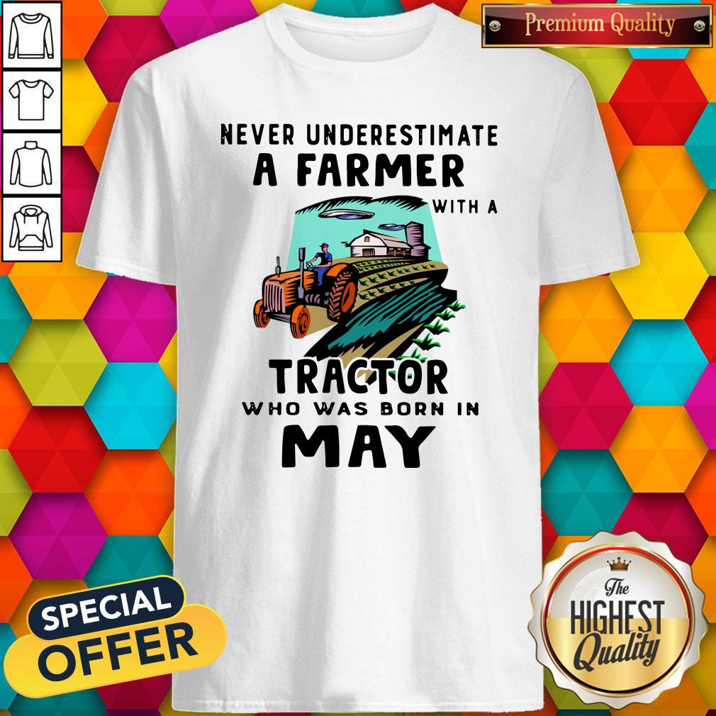 Never Underestimate A Farmer With A Tractor Who Was Born In May Shirt