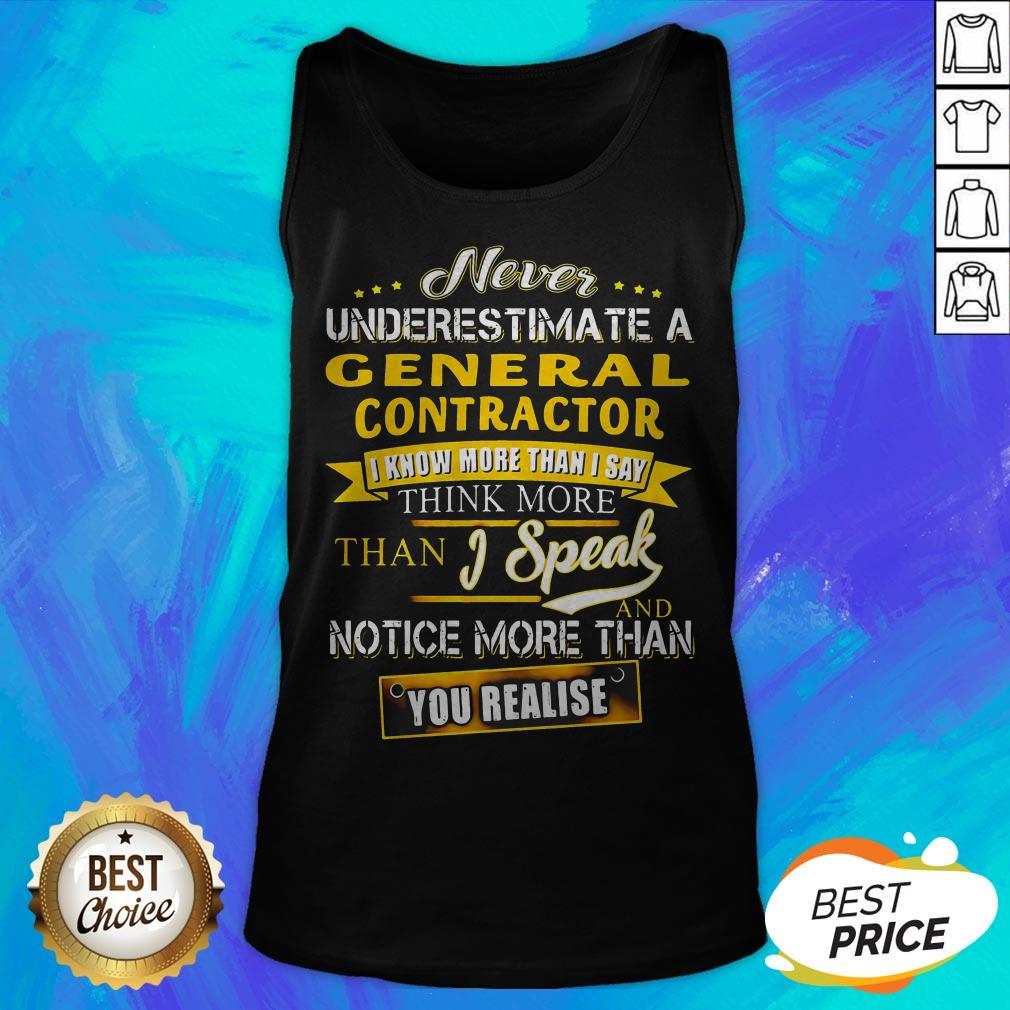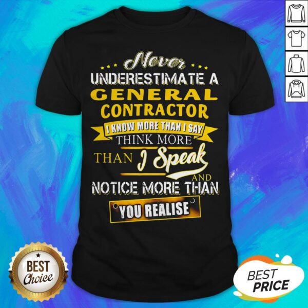 Never Underestimate A General Contractor I Know More Than I Say Think More Than I Speak And Notice More Than You Realise Shirt