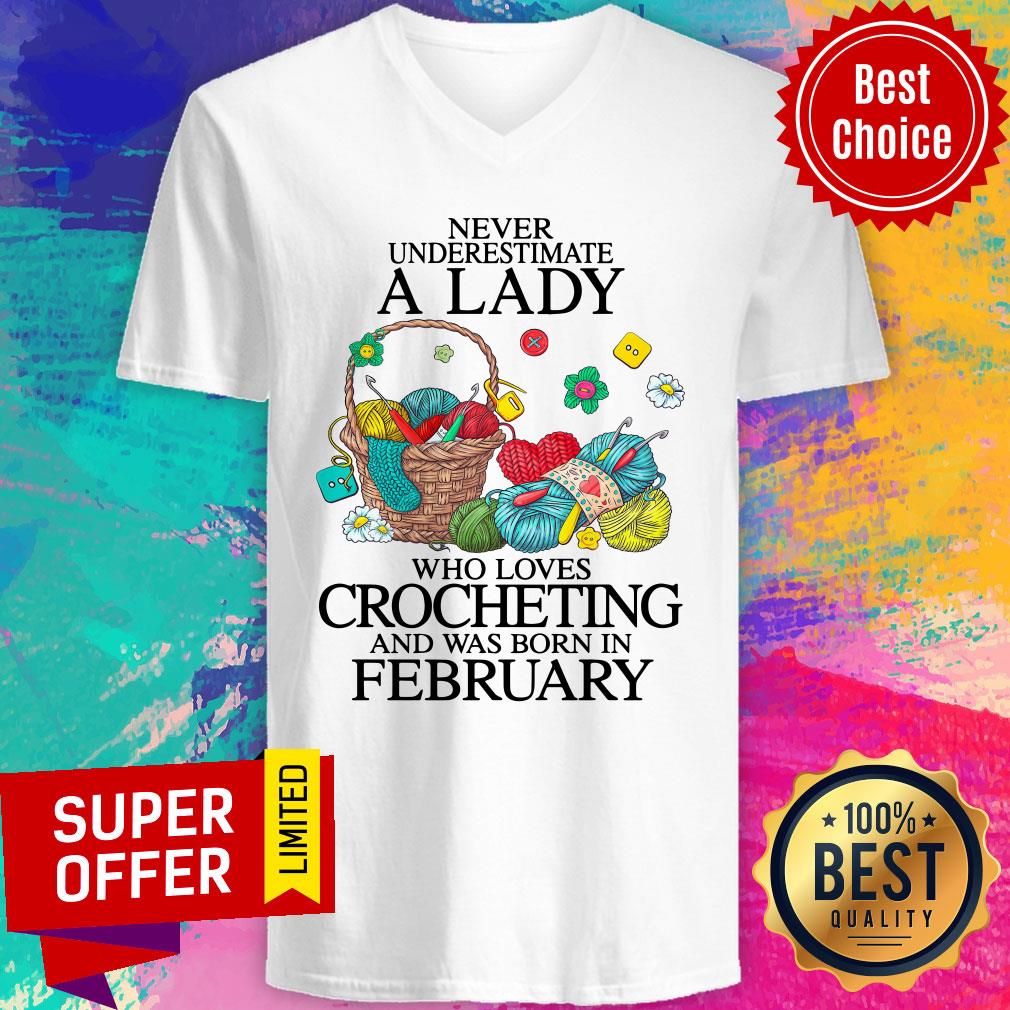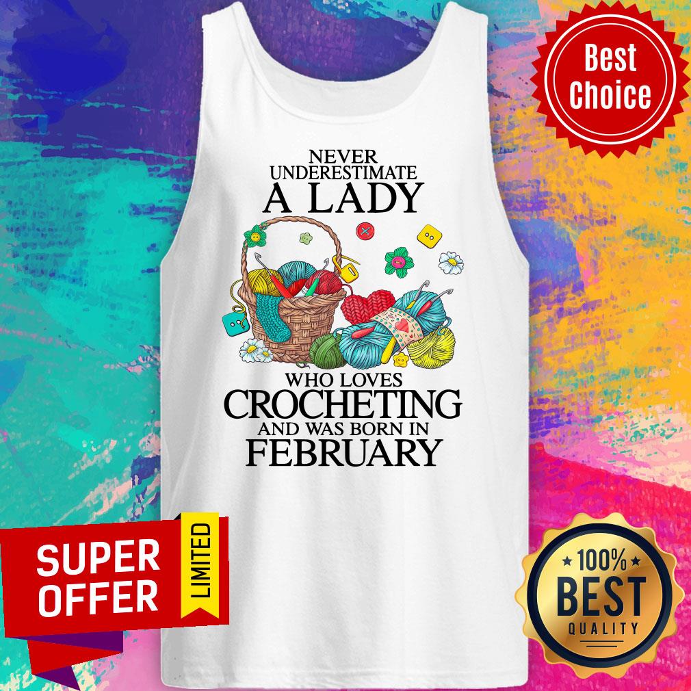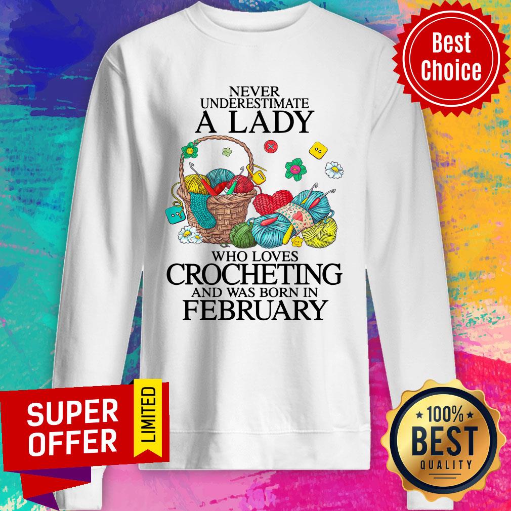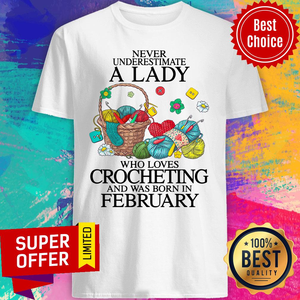 Never Underestimate A Lady Who Loves Crocheting And Was Born In February Shirt