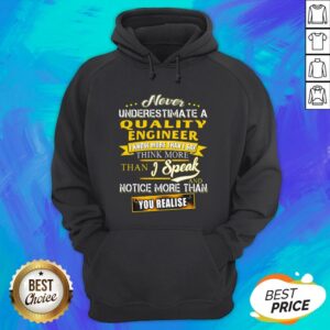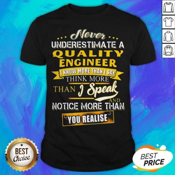Never Underestimate A Quality Engineer I Know More Than I Say Think More Than I Speak And Notice More Than You Realise Shirt