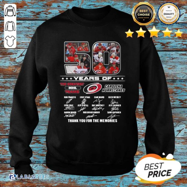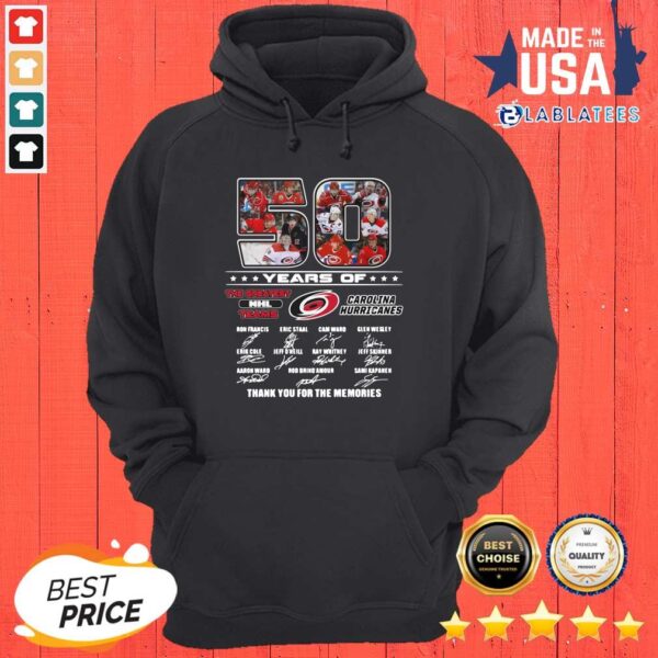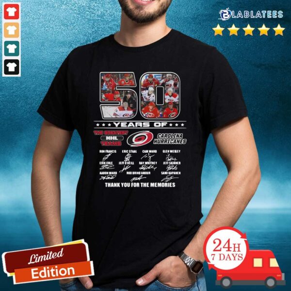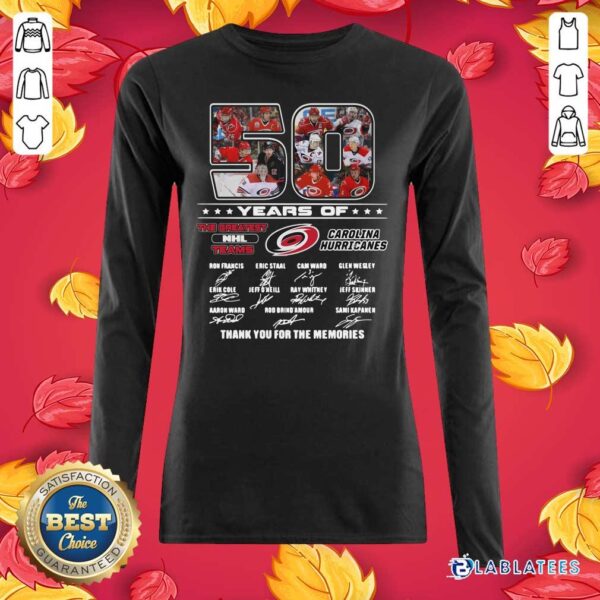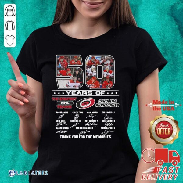 Nice 50 Years Of Carolina Hurricanes The Greatest NHL Teams Thank You For The Memories Signatures Shirt