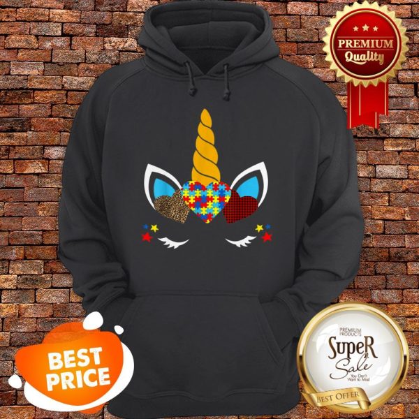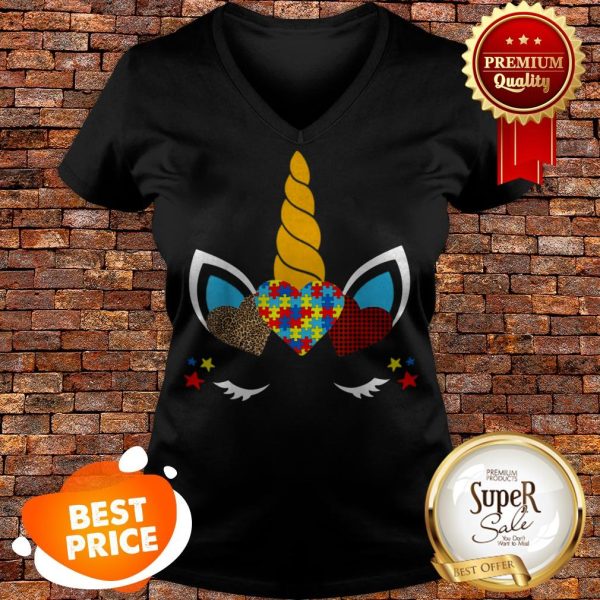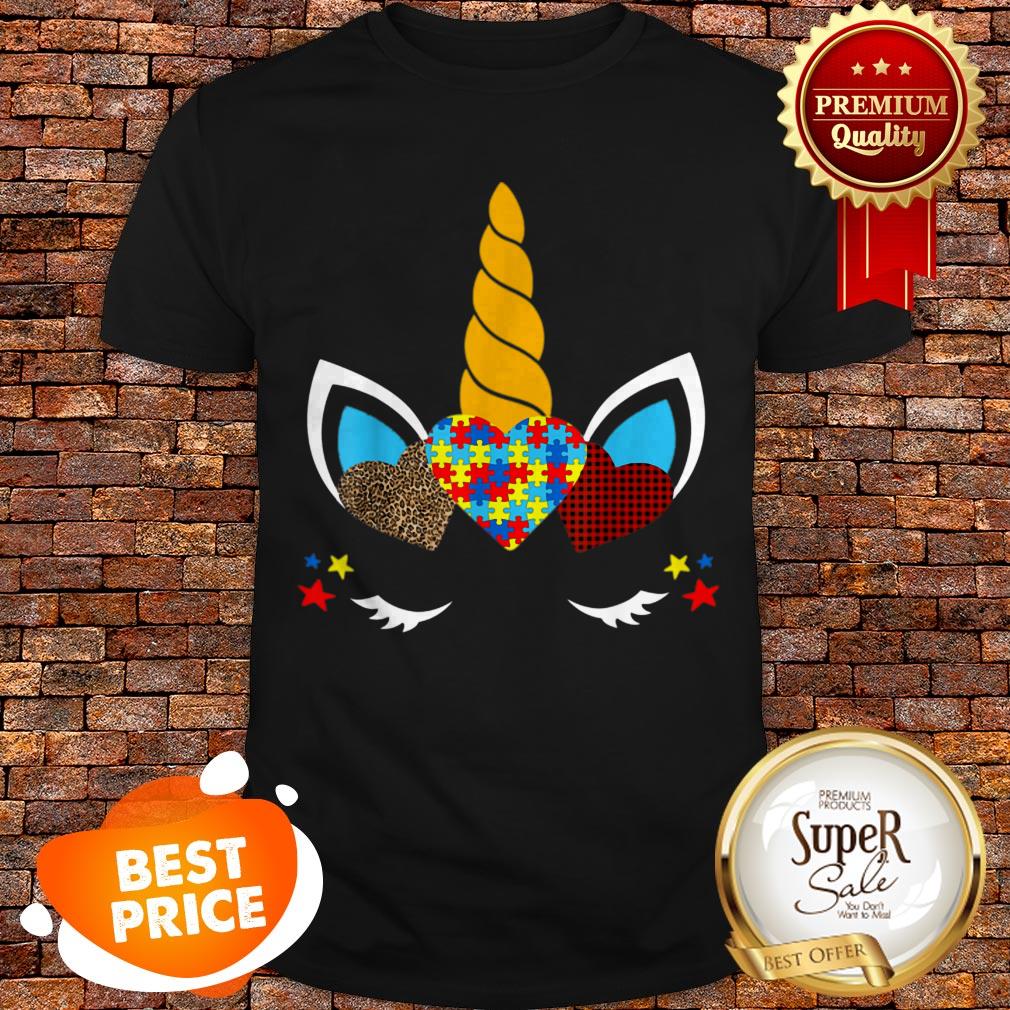 Nice Autism Awareness Unicorn Face Leopard Print Hearts Shirt