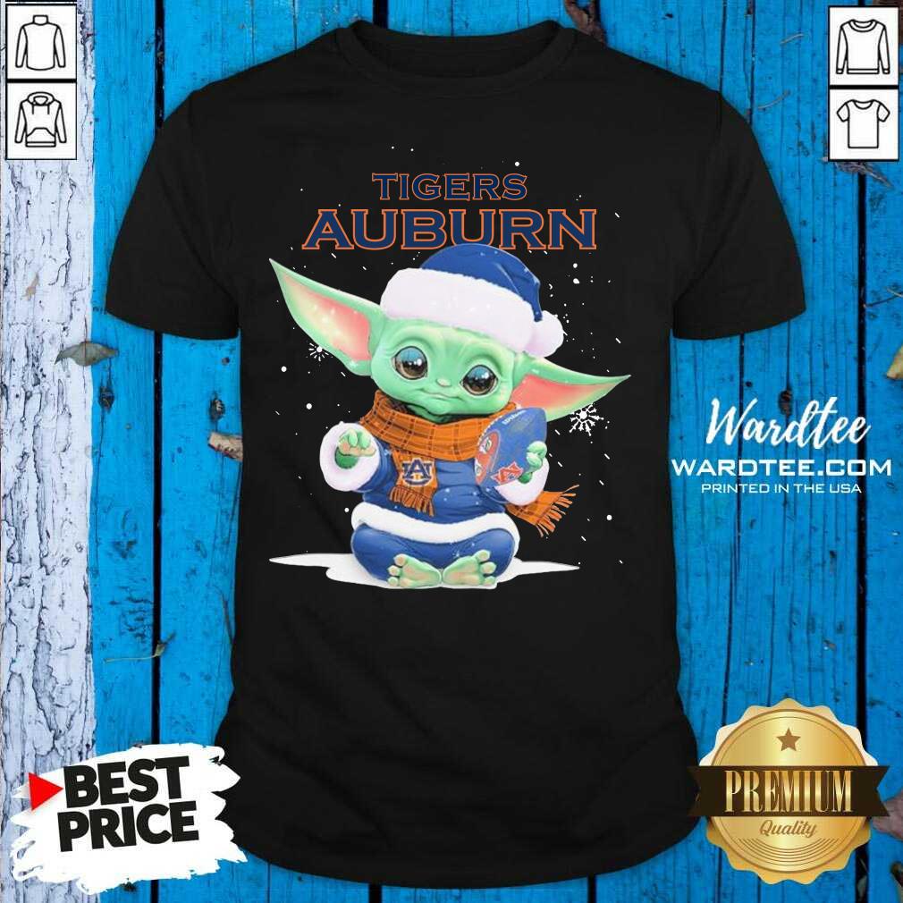 Nice Baby Yoda Play Rugby Tigers Auburn Merry Christmas Shirt