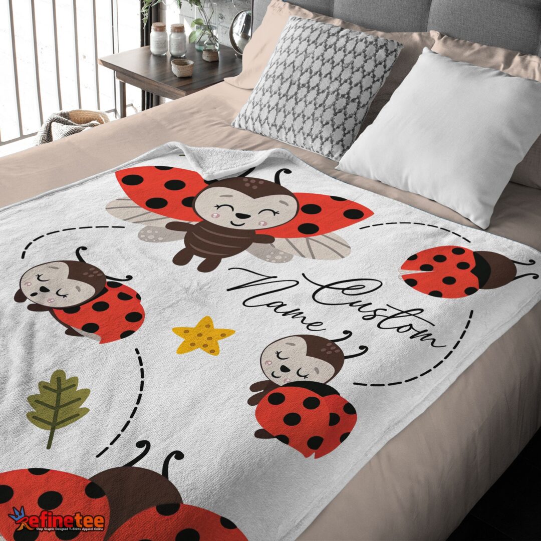 Nice Cute Ladybug Cartoon Blanket Fleece Customized Blanket
