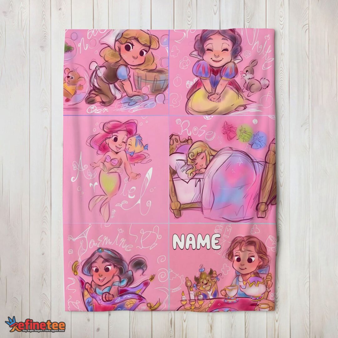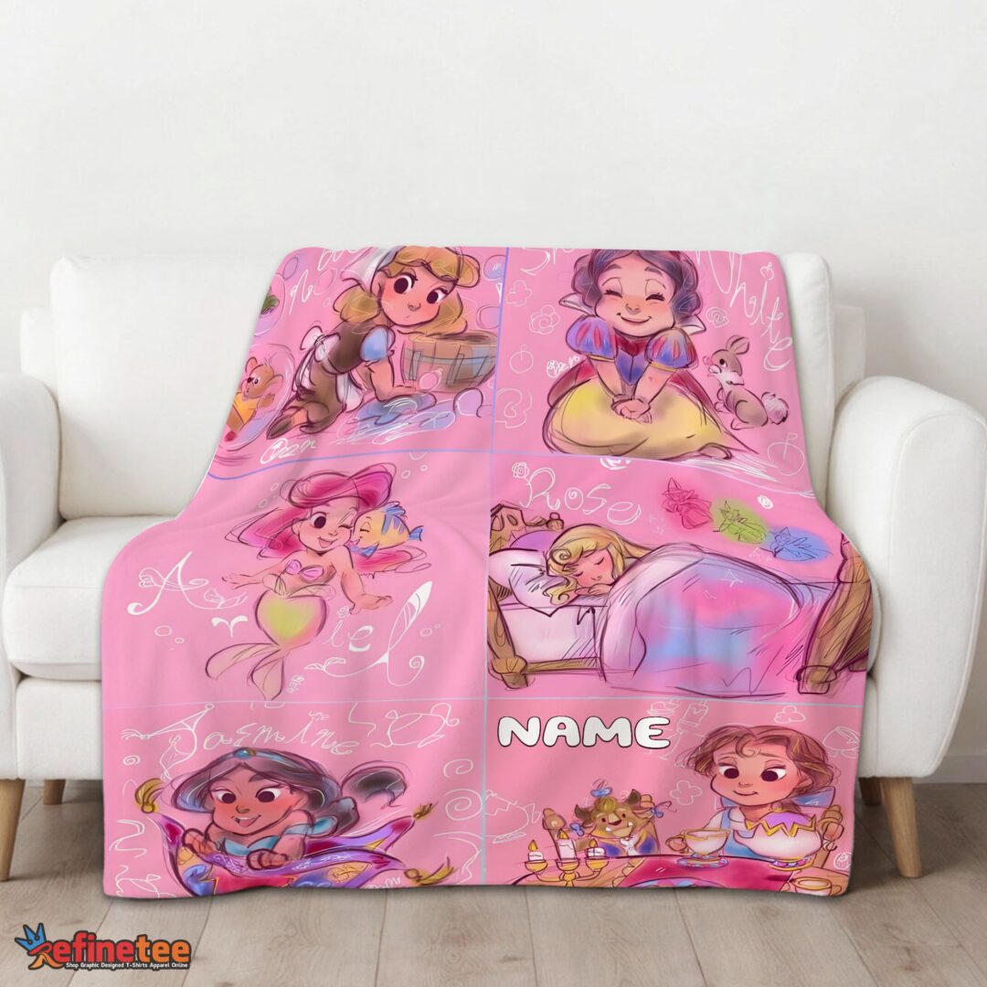 Nice Disney Cute Kids Princess Sketches Blanket Fleece Customized Blanket