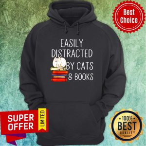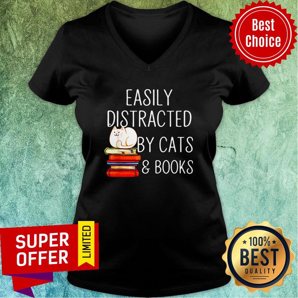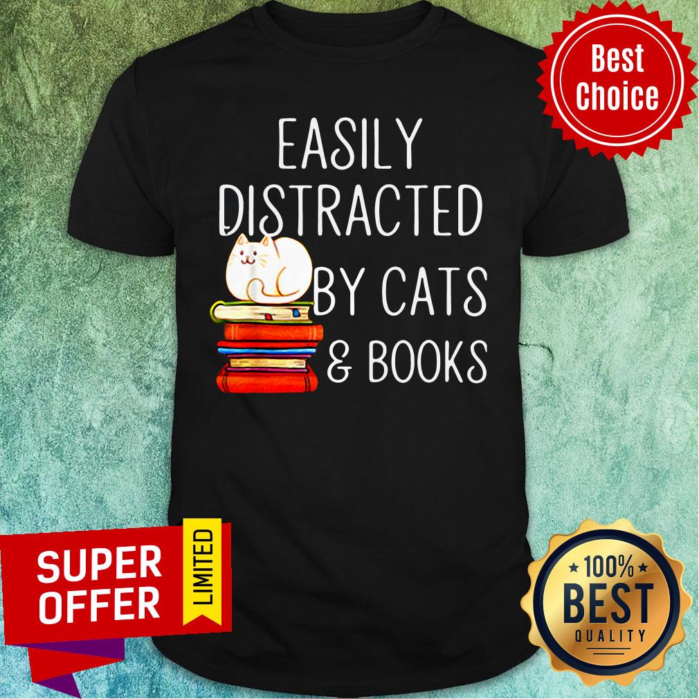 Nice Easily Distracted By Cats And Books Shirt