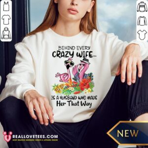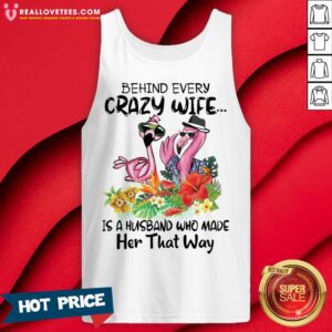 Nice Flamingo Behind Every Crazy Wife Is A Husband Who Made Her That Way Shirt