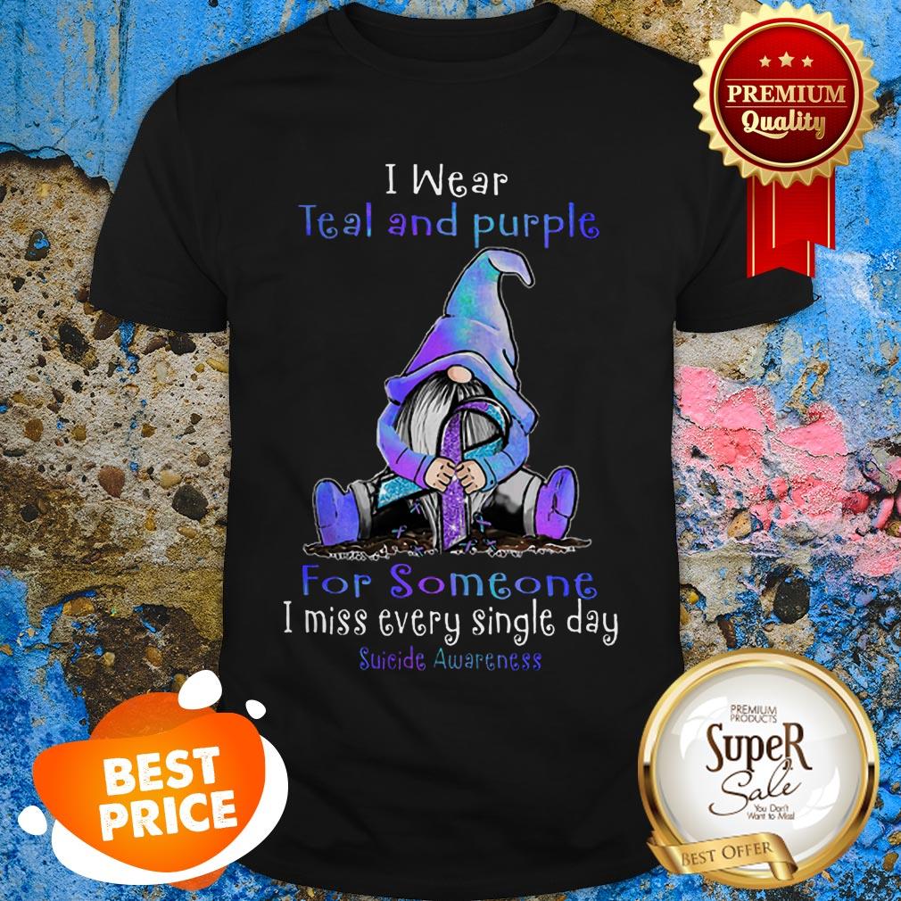 Nice Gnome I Wear Teal And Purple For Someone Suicide Awareness Shirt