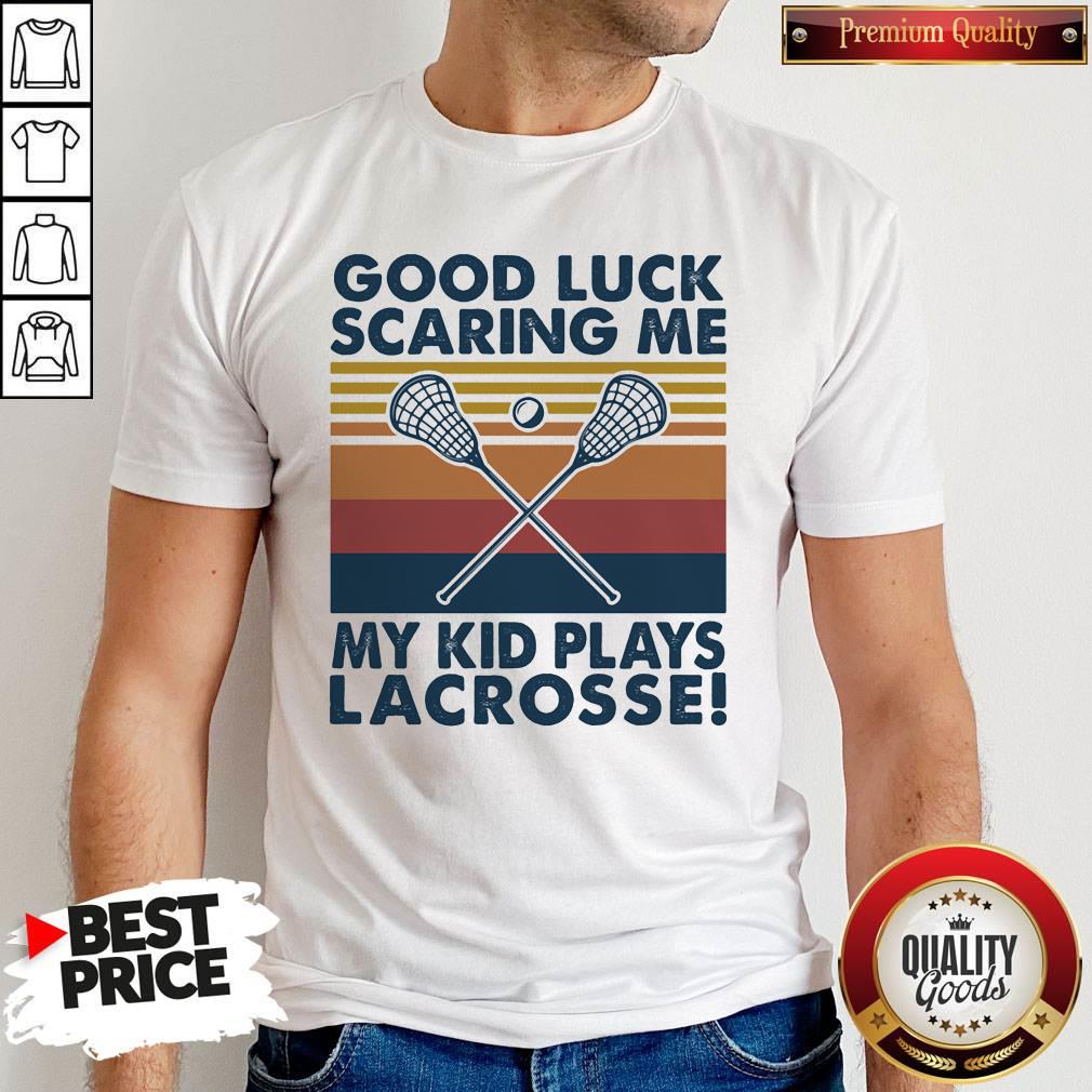 Nice Good Luck Scaring Me My Kid Plays Lacrosse Vintage Retro Shirt