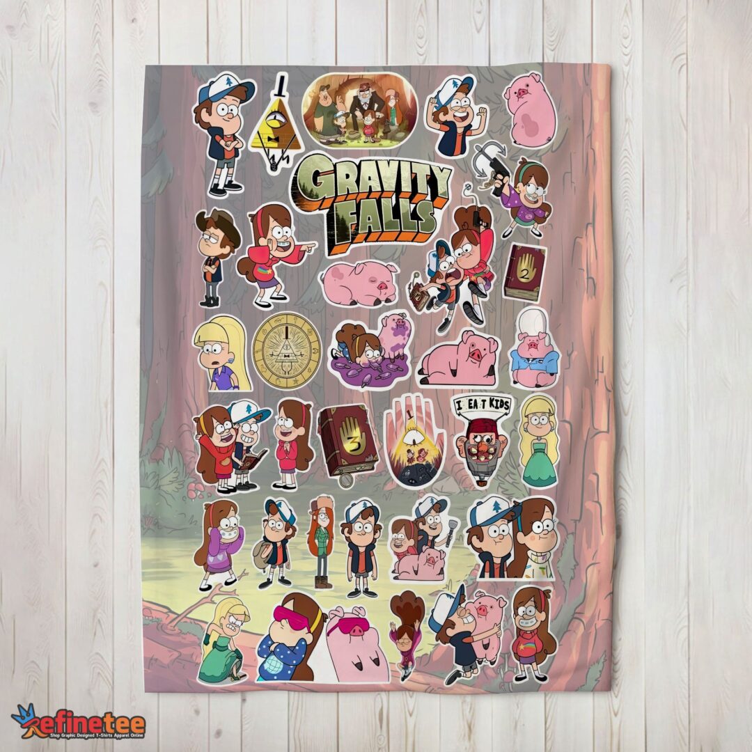 Nice Gravity Falls Dipper Mabel & Waddles Sticker Collage Blanket Fleece Customized Blanket