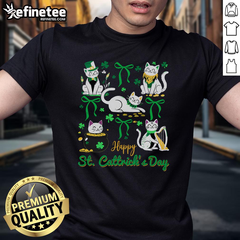 Nice Happy St Cattricks Day Coquette Bow Cat St Patricks Day T-Shirt
