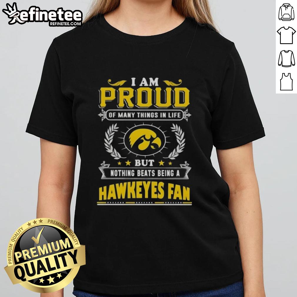 Nice I Am Proud Of Many Things In Life But Nothing Beats Being A Iowa Hawkeyes Fan T-Shirt