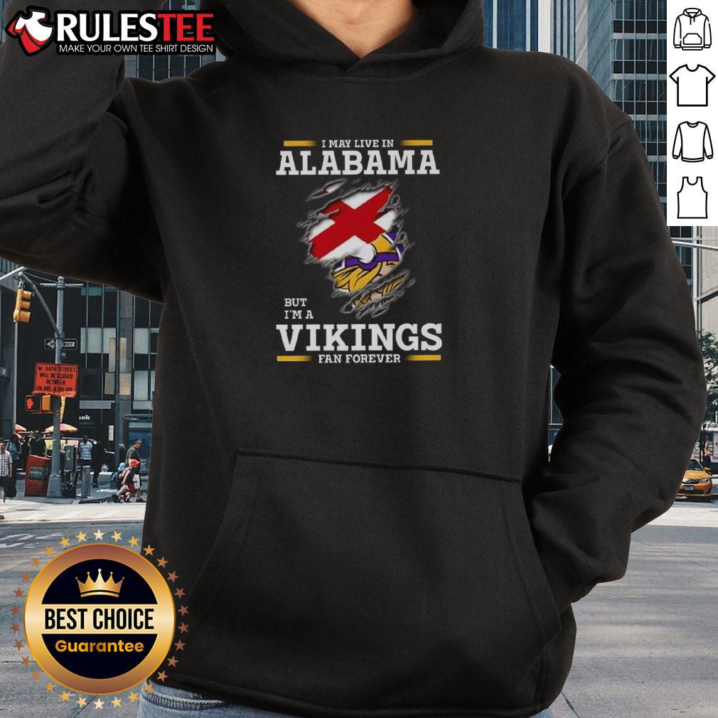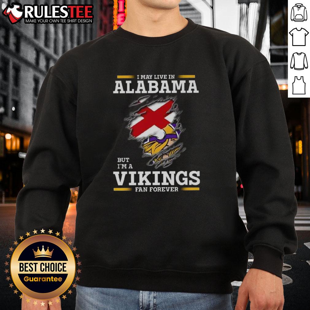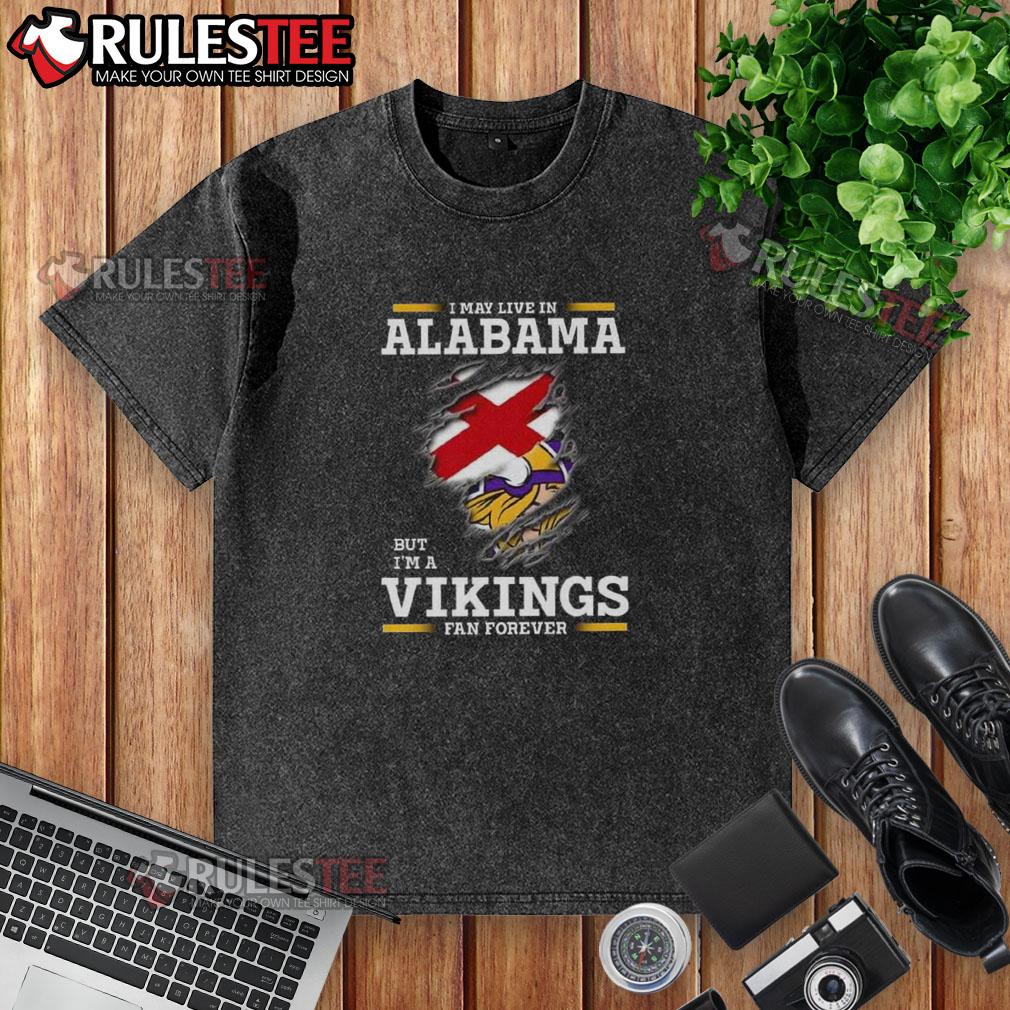 Nice I May Live In Alabama But I’m A Minnesota Vikings Fan Forever T-Shirt