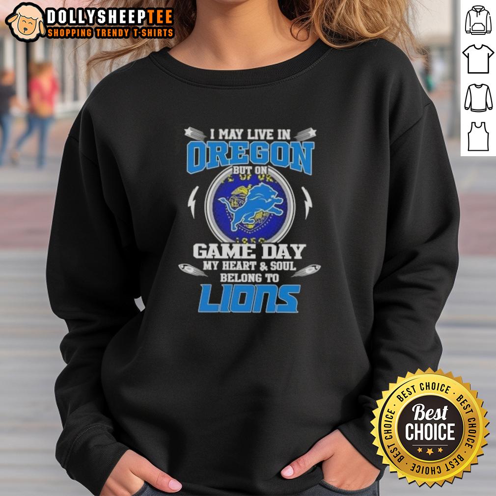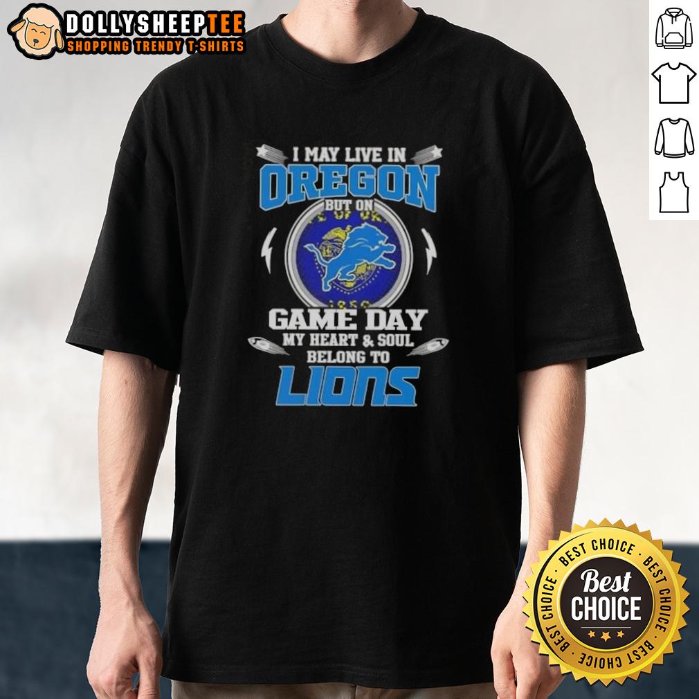 Nice I May Live In Oregon But On Game Day My Heart And Soul Belongs To Detroit Lions T-Shirt
