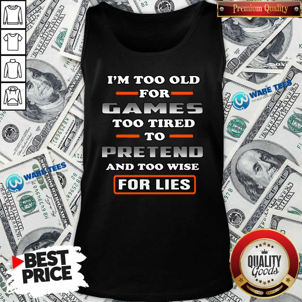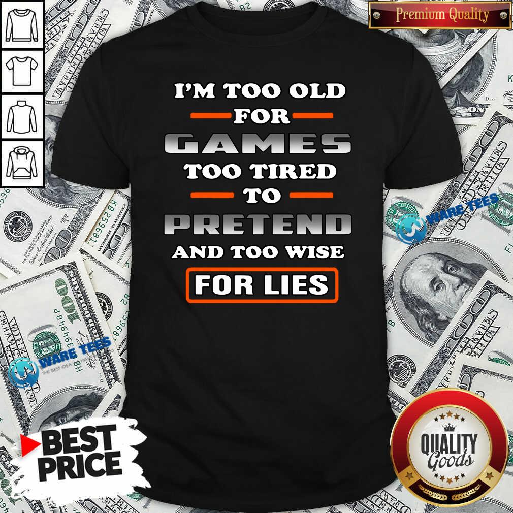 Nice I’m Too Old For Games Too Tired To Pretend And Too Wise For Lies Shirt