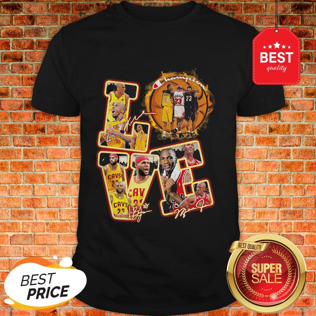 Nice Love Kobe Bryant Michael Jordan Lebron James Champion Signatures Shirt