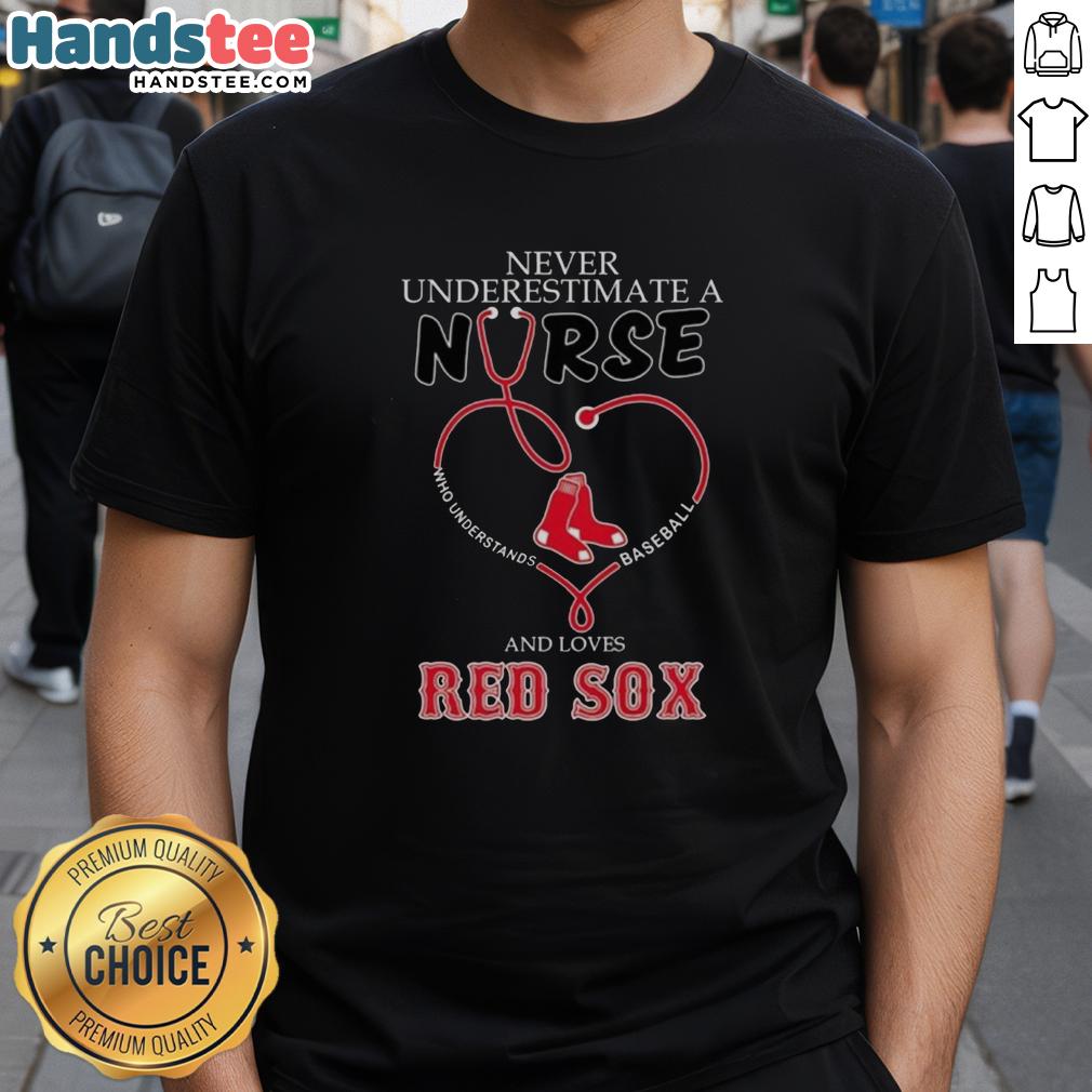Nice Never Underestimate A Nurse Who Understands Baseball And Loves Boston Red Sox Stethoscope Heart T-Shirt