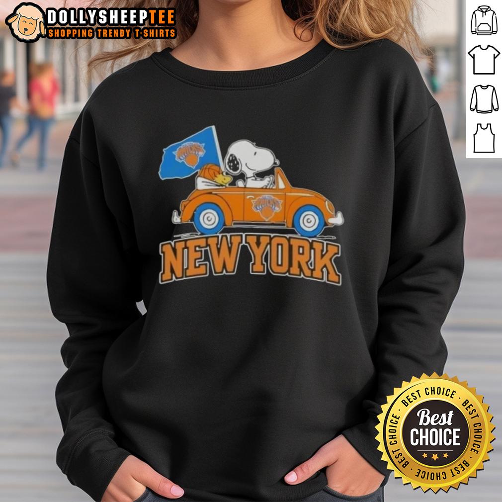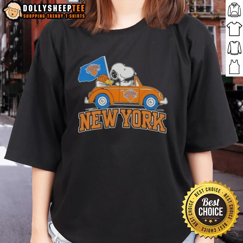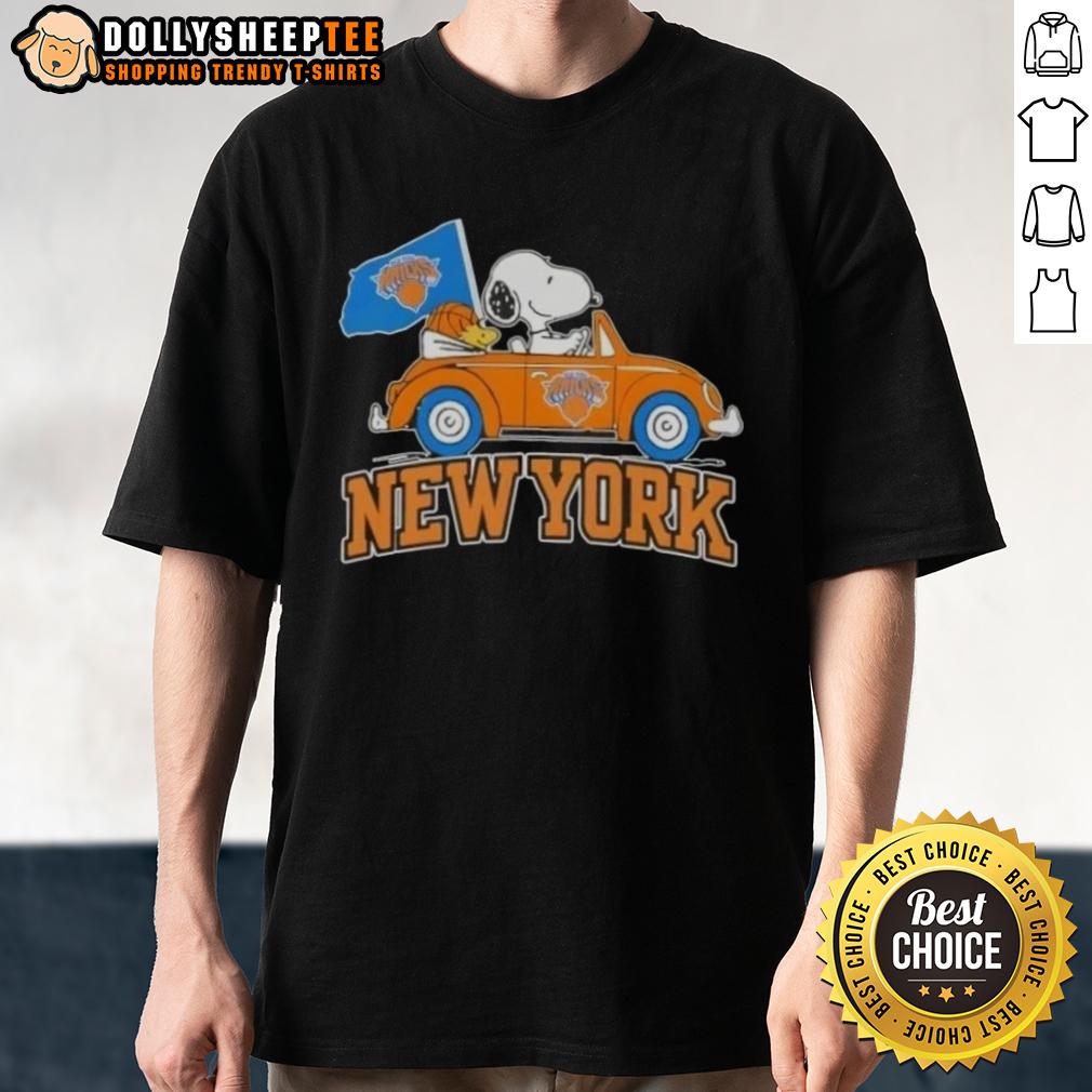 Nice Peanuts Snoopy Driving Car New York Knicks Basketball T-Shirt