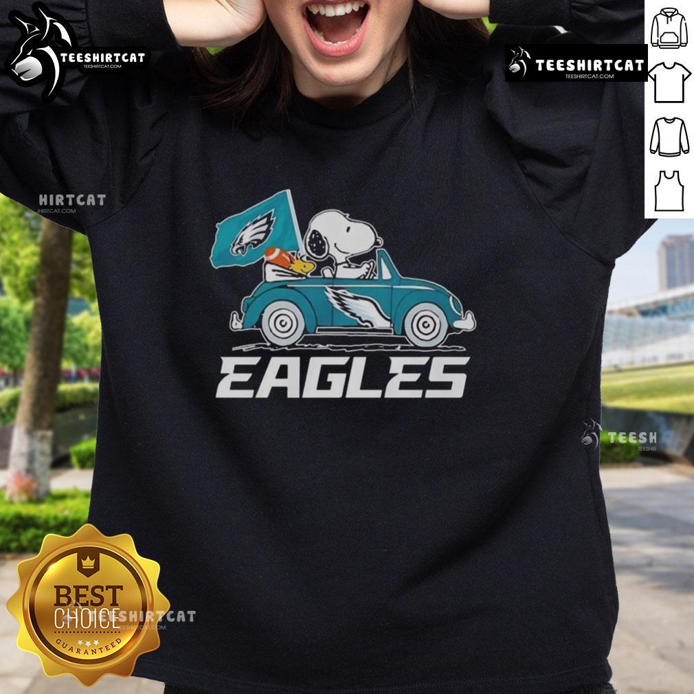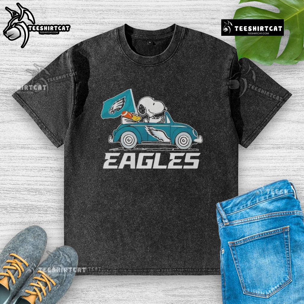 Nice Philadelphia Eagles Flag Snoopy And Woodstock Driving Car T-Shirt