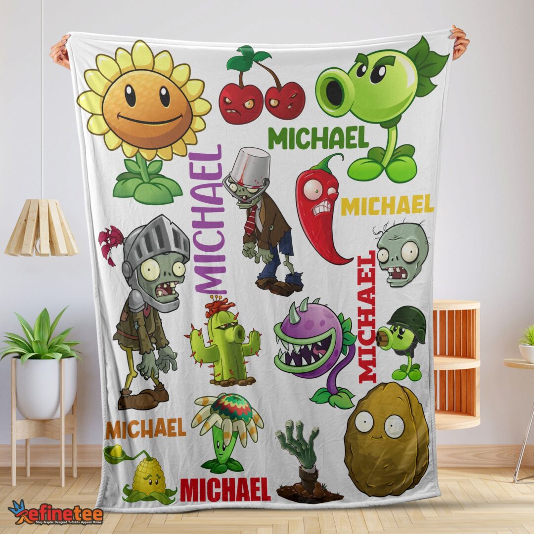 Nice Pretty Plants Vs Zombies Characters Blanket Fleece Customized Blanket
