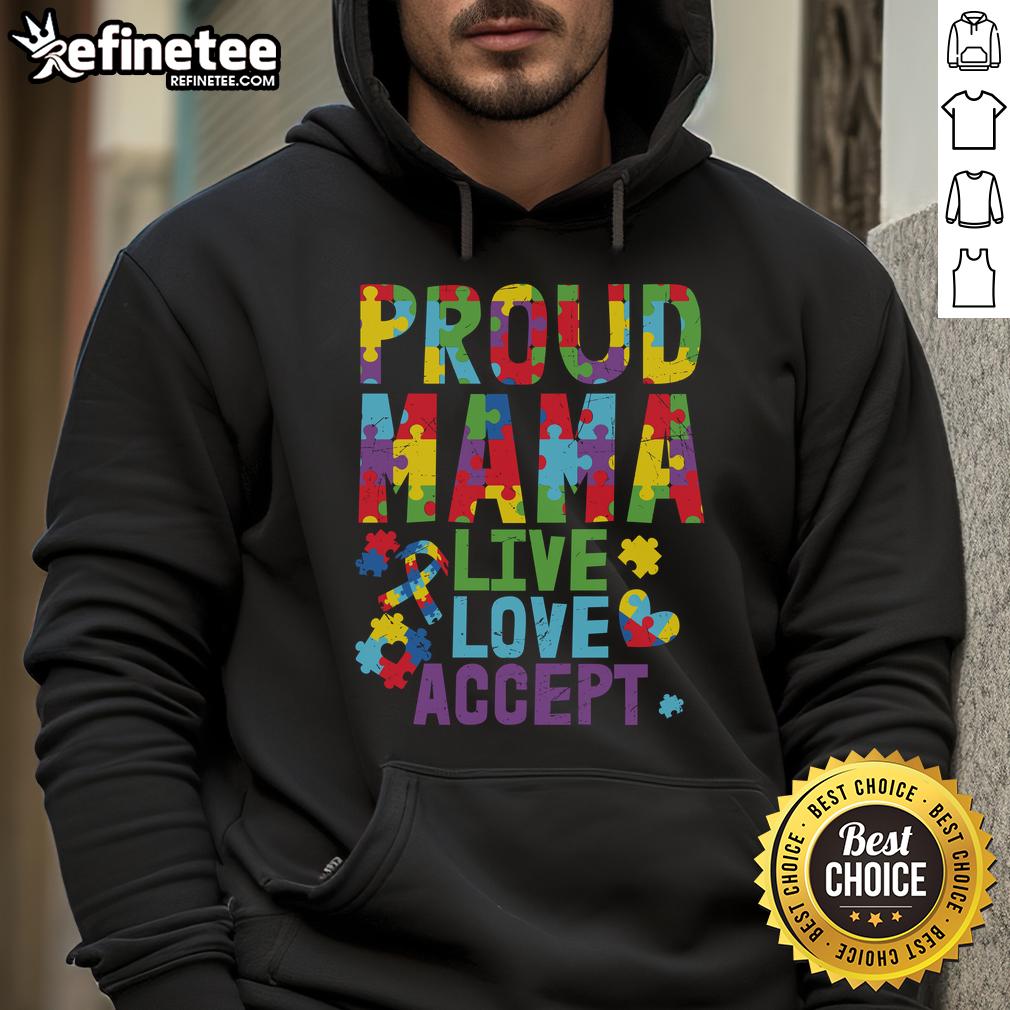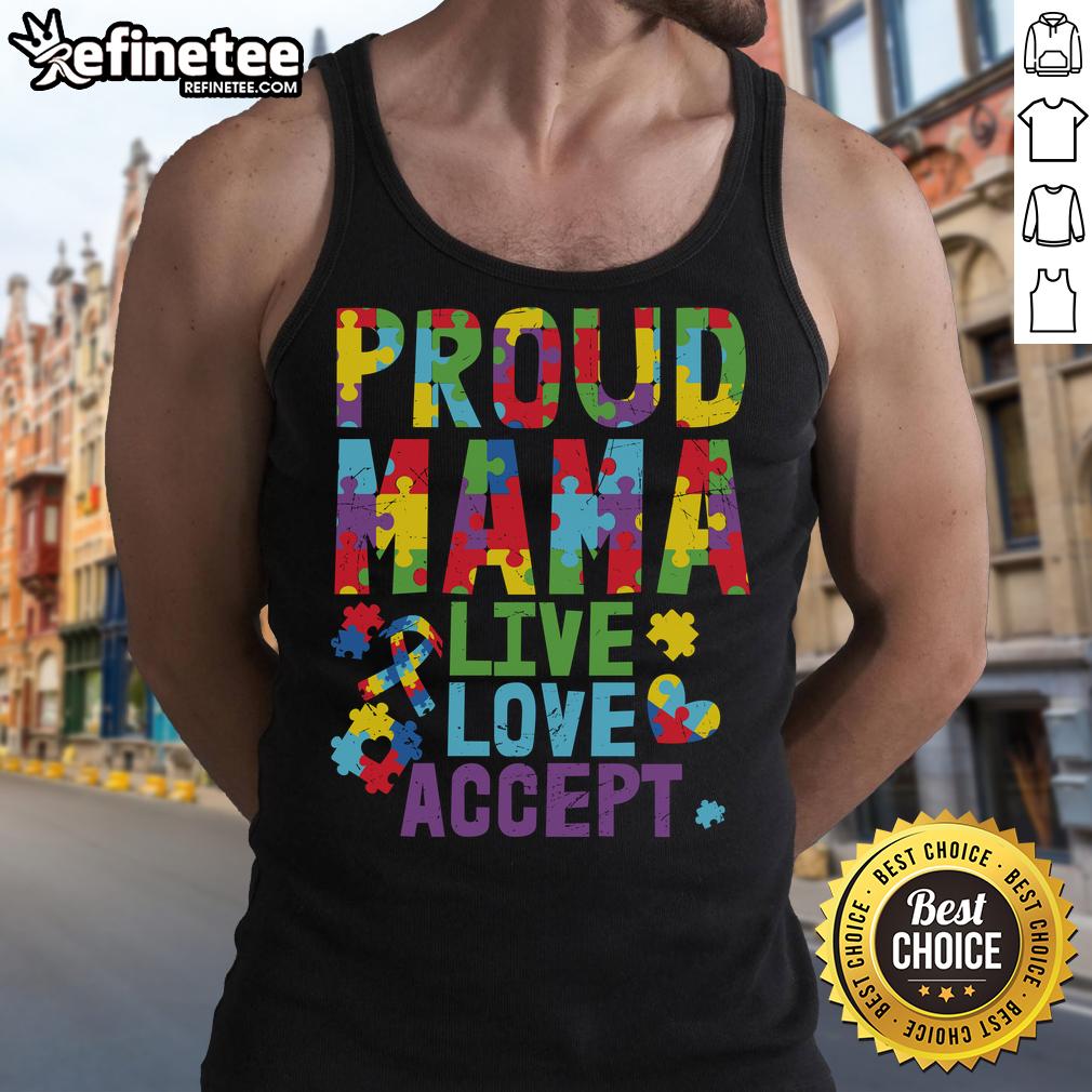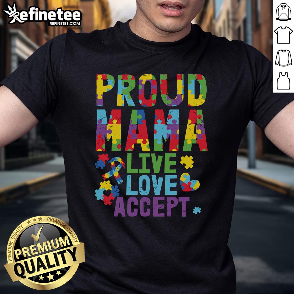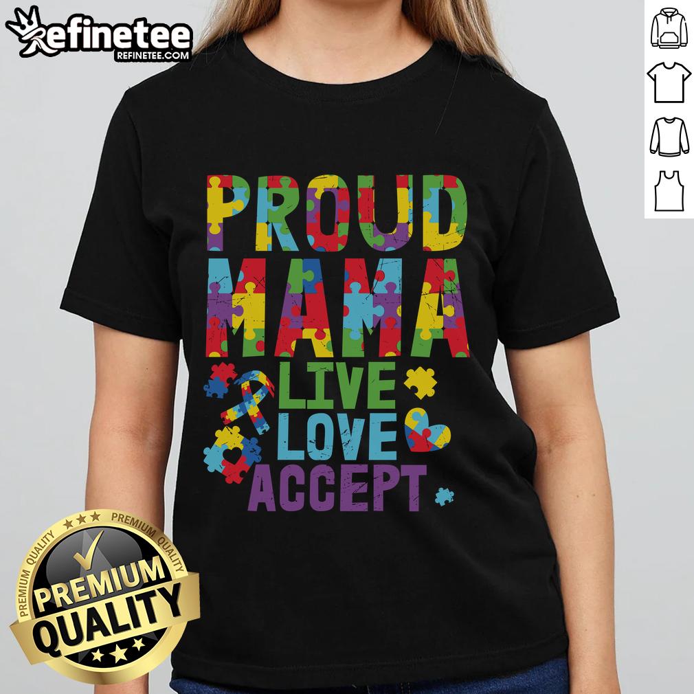 Nice Proud Mama Autism Awareness Live Love Accept Puzzle Ribbon T-Shirt