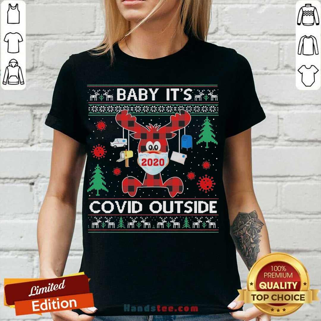 Nice Reindeer Face Mask 2020 Baby It’s Covid Outside Ugly Christmas Shirt