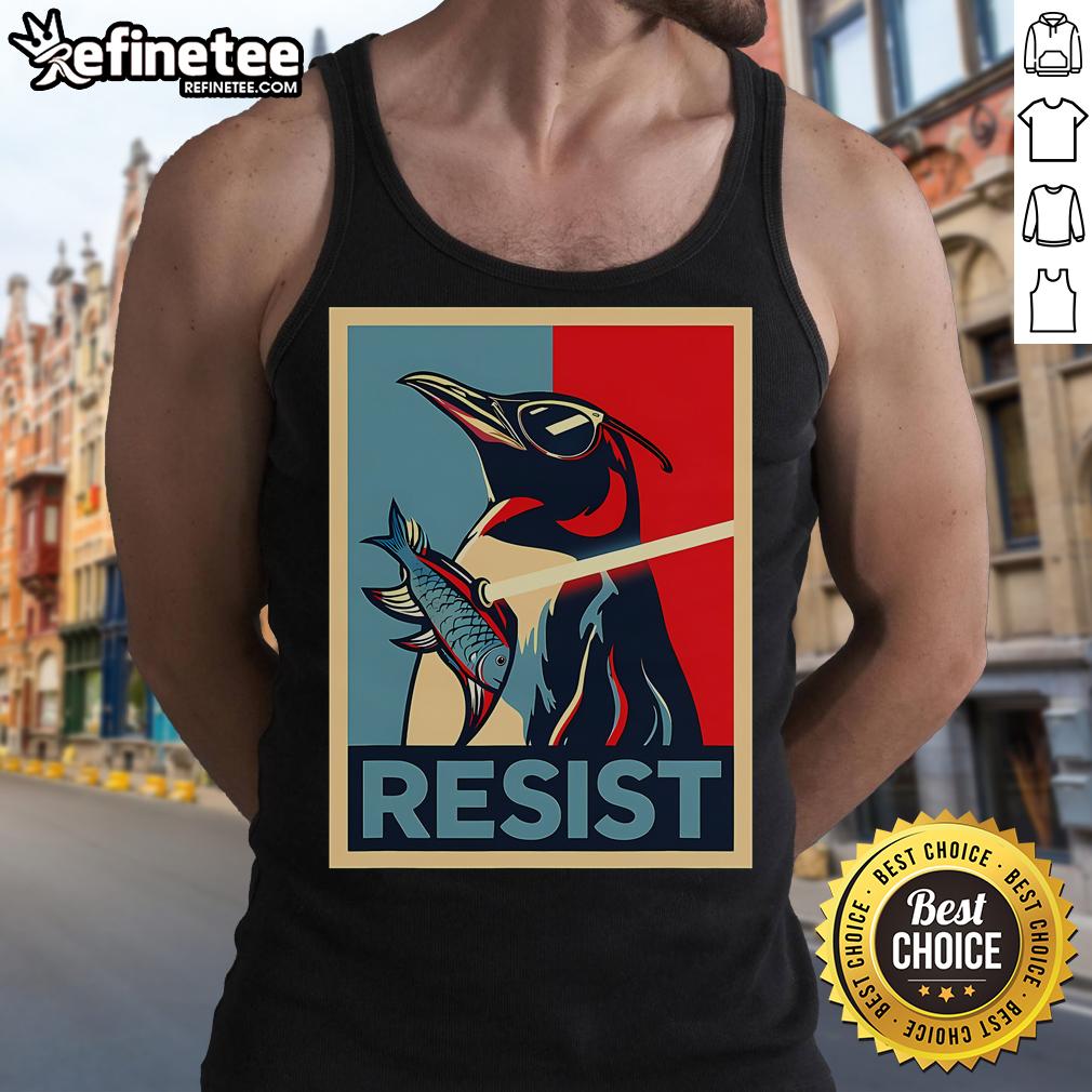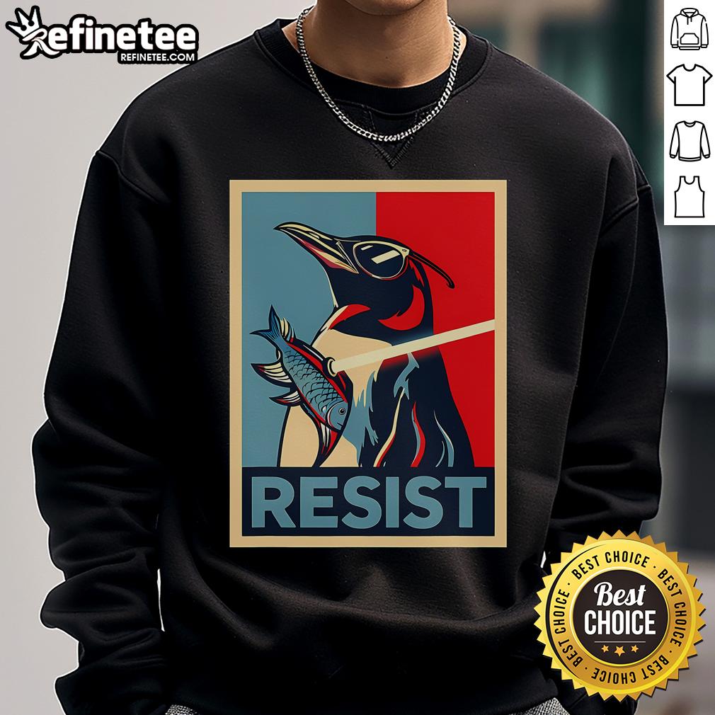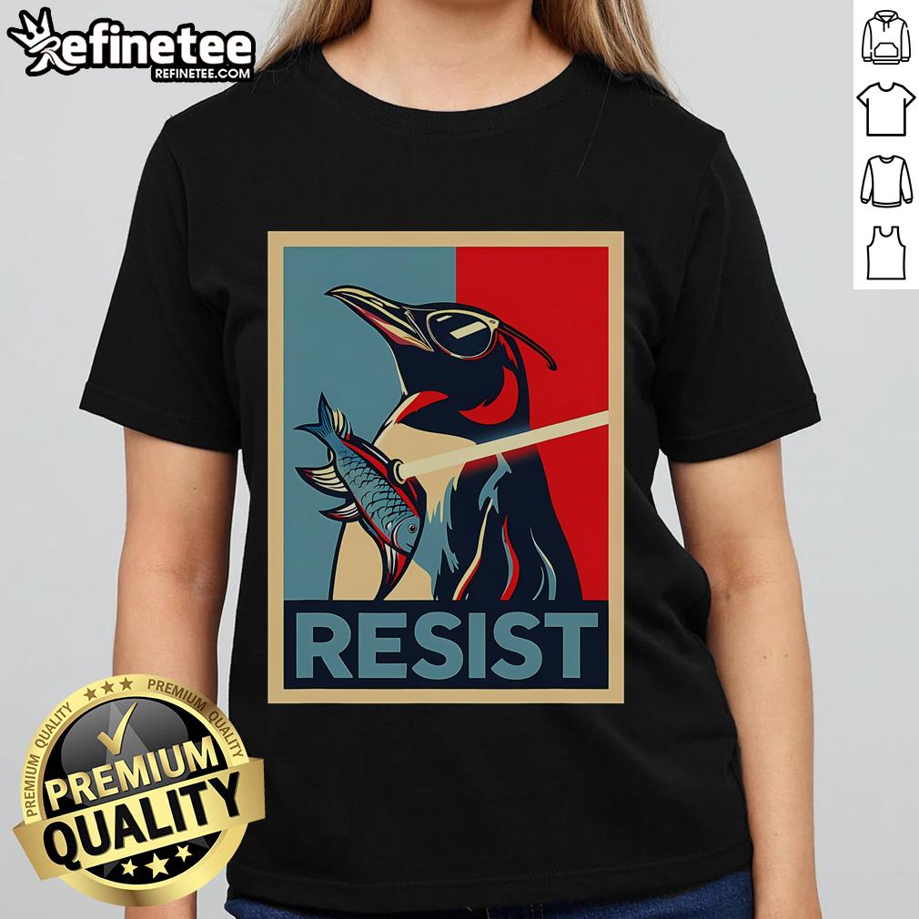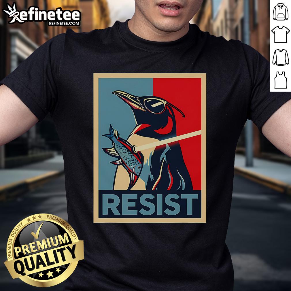 Nice Resist Penguin Protest Bird With Sunglasses Sword Fish T-Shirt