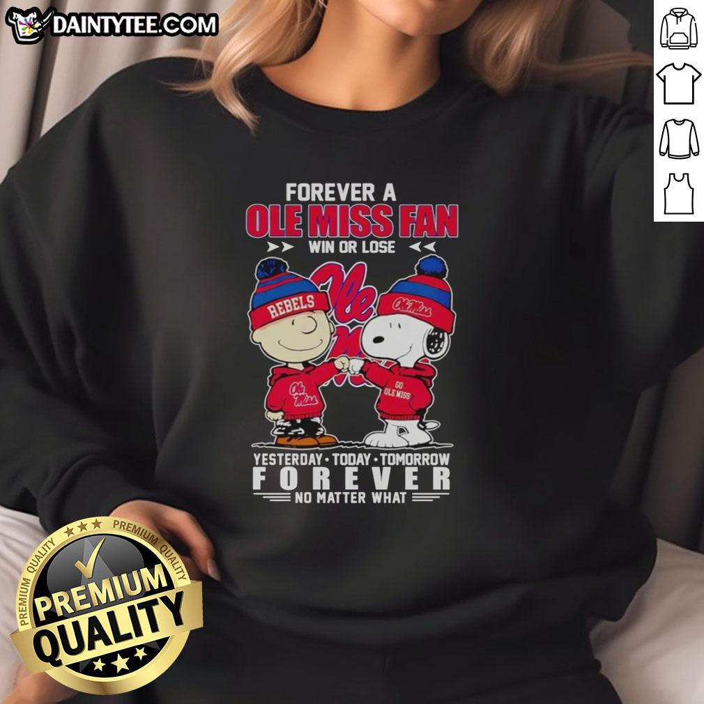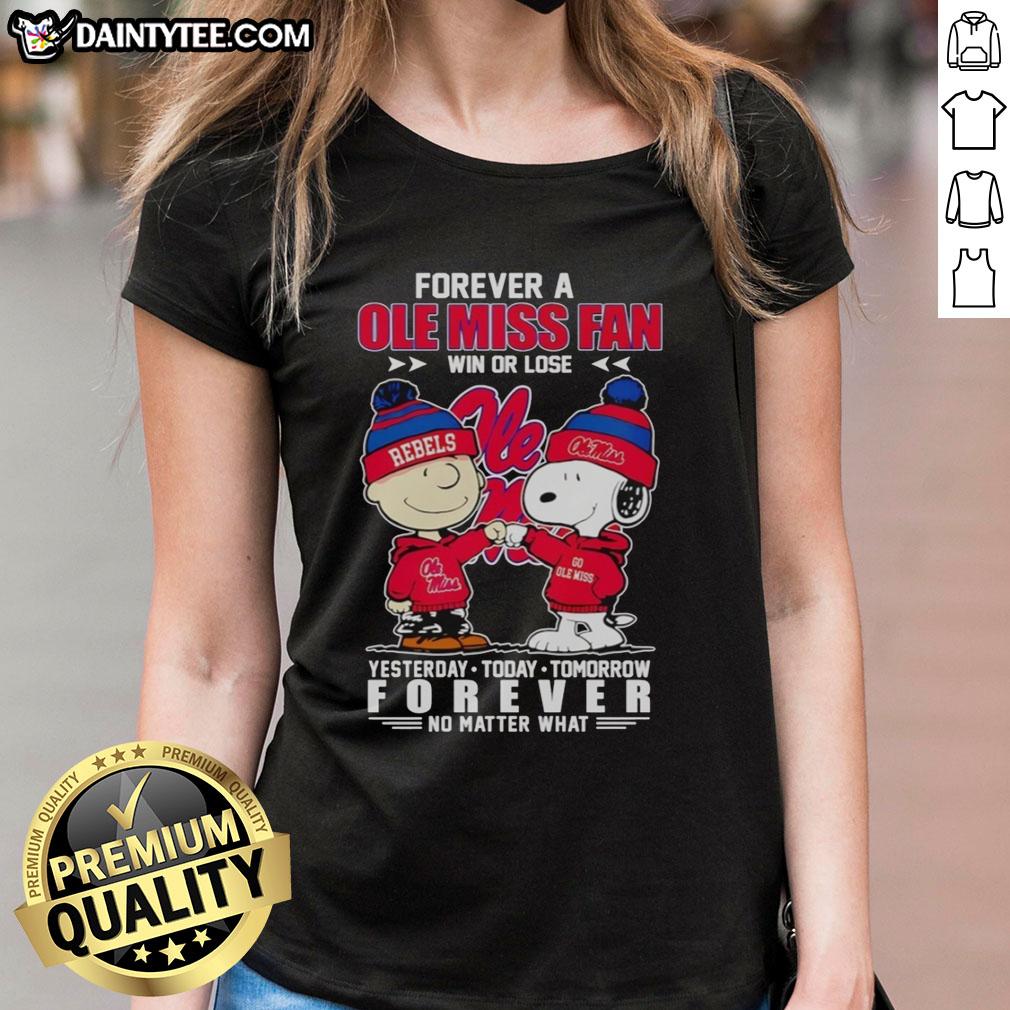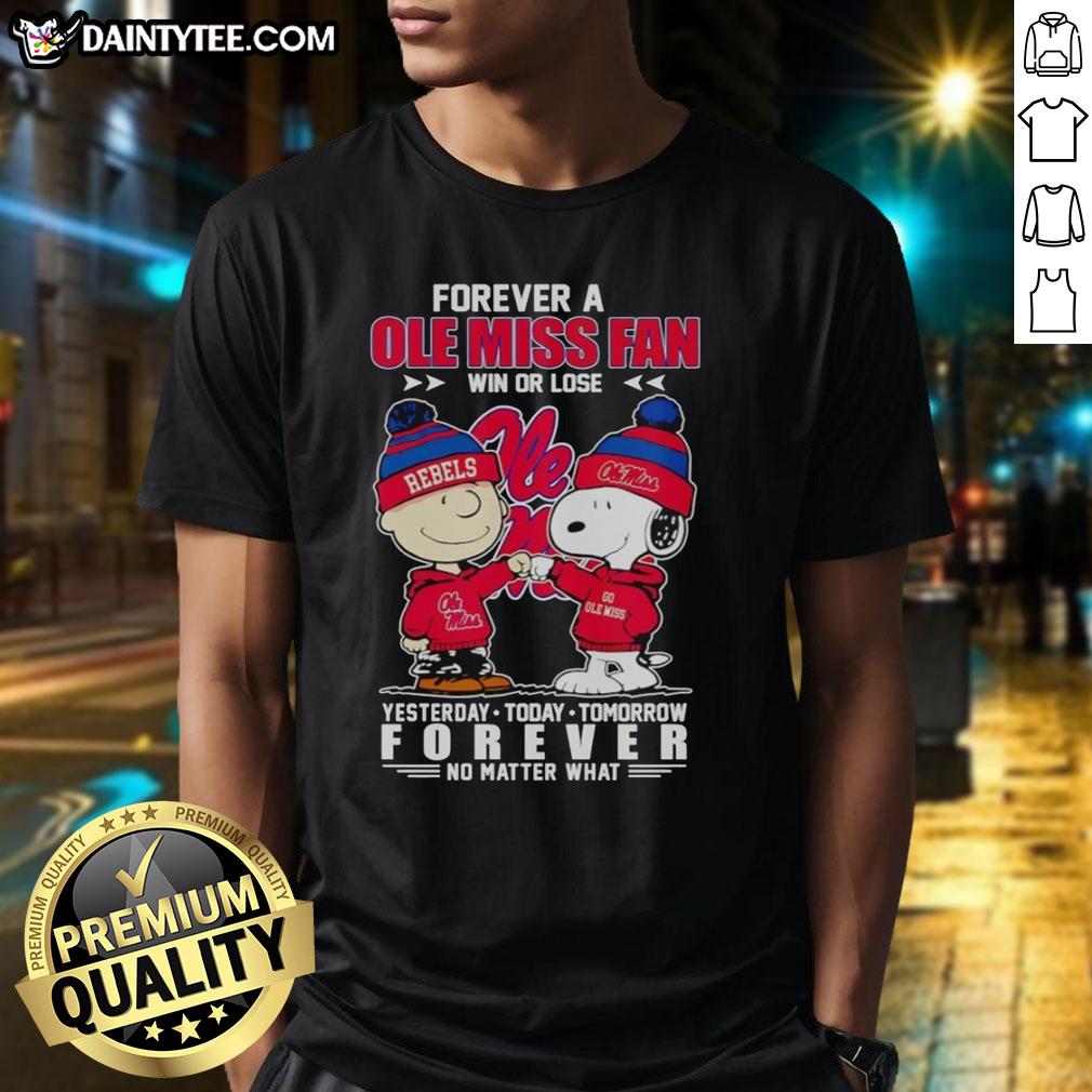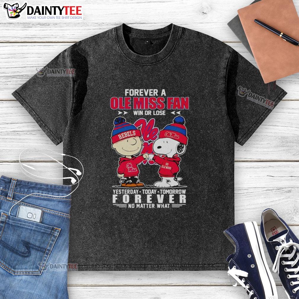 Nice Snoopy And Charlie Brown Forever A Ole Miss Rebels Fan Win Or Lose Yesterday Today Tomorrow T-Shirt