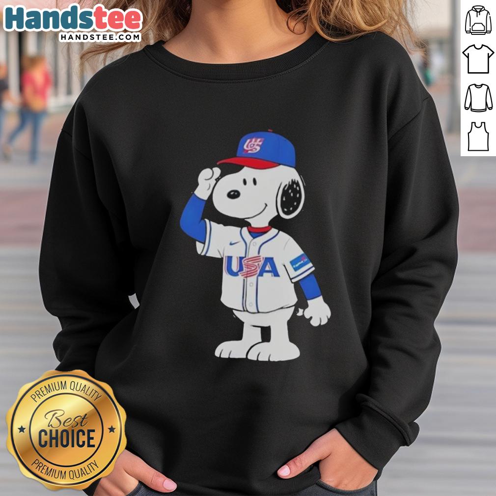 Nice Snoopy USA Baseball Jersey Salute Graphic T-Shirt