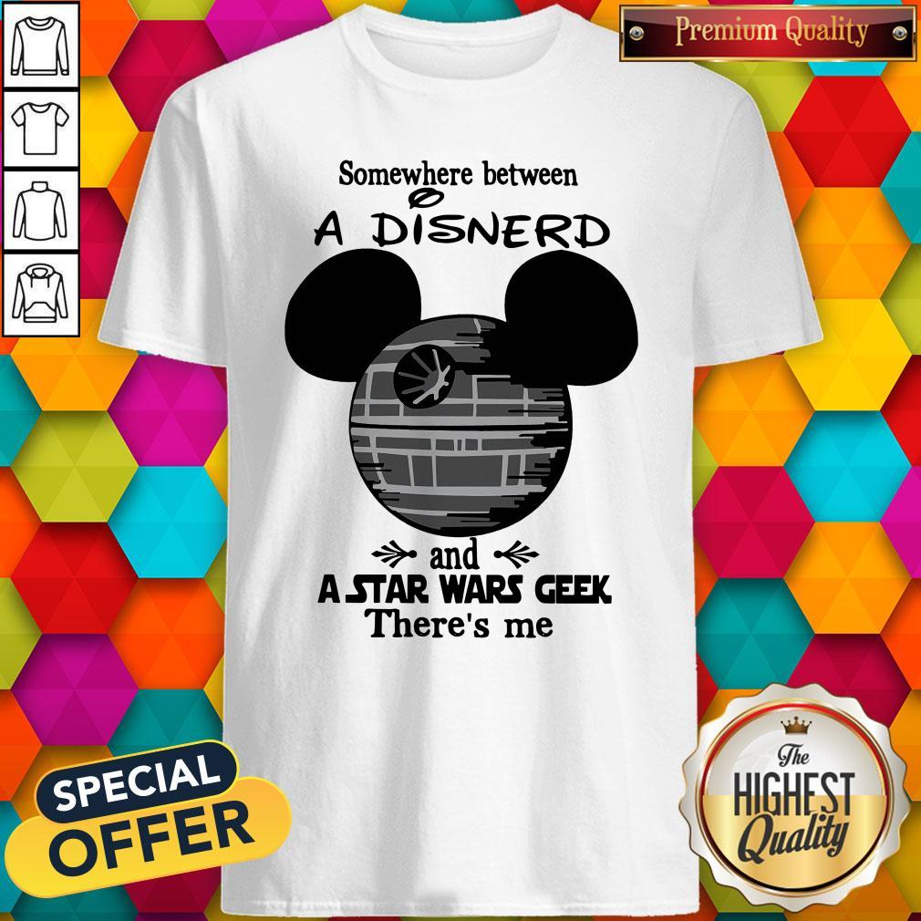 Nice Somewhere between A Disnerd And A Star Wars Geek There’s Me Shirt