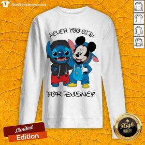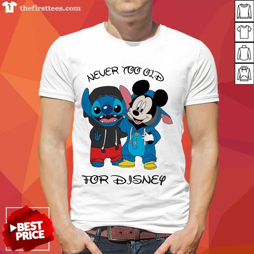 Nice Stitch And Mickey Mouse Never Too Old For Disney Shirt