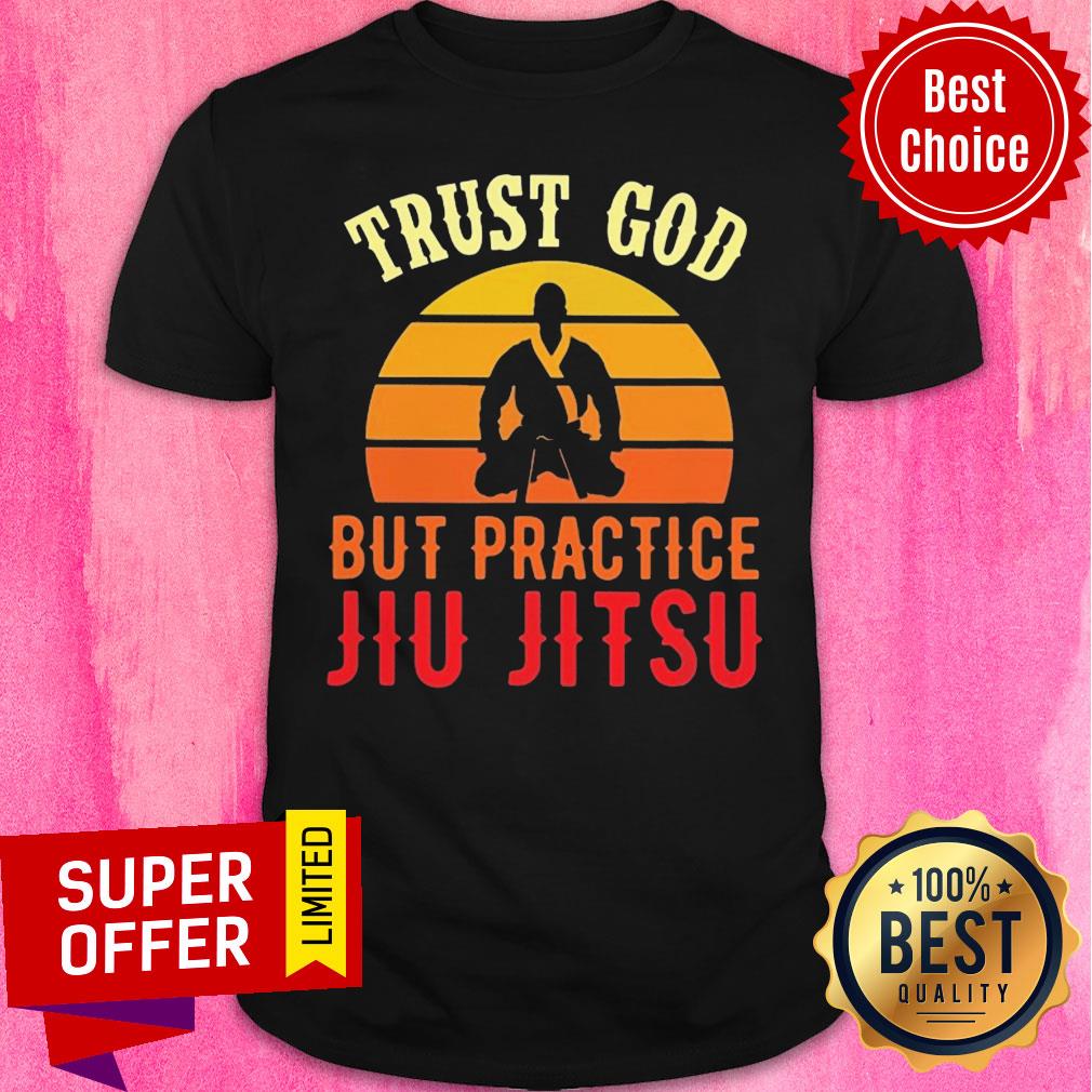 Nice Trust God But Practice Jiu Jitsu Vintage Sunset Shirt