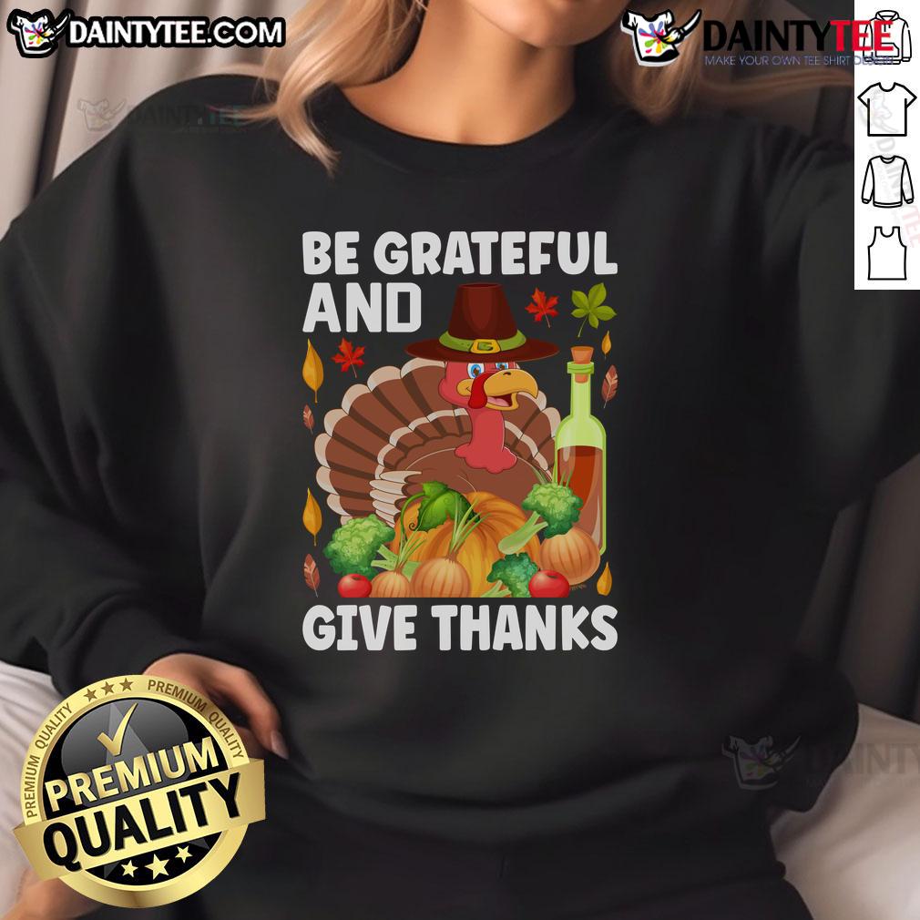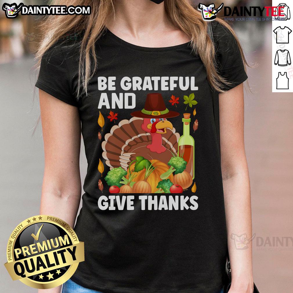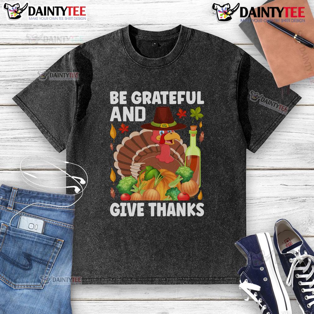 Nice Turkey Wine Be Grateful And Give Thanks Thanksgiving T-Shirt