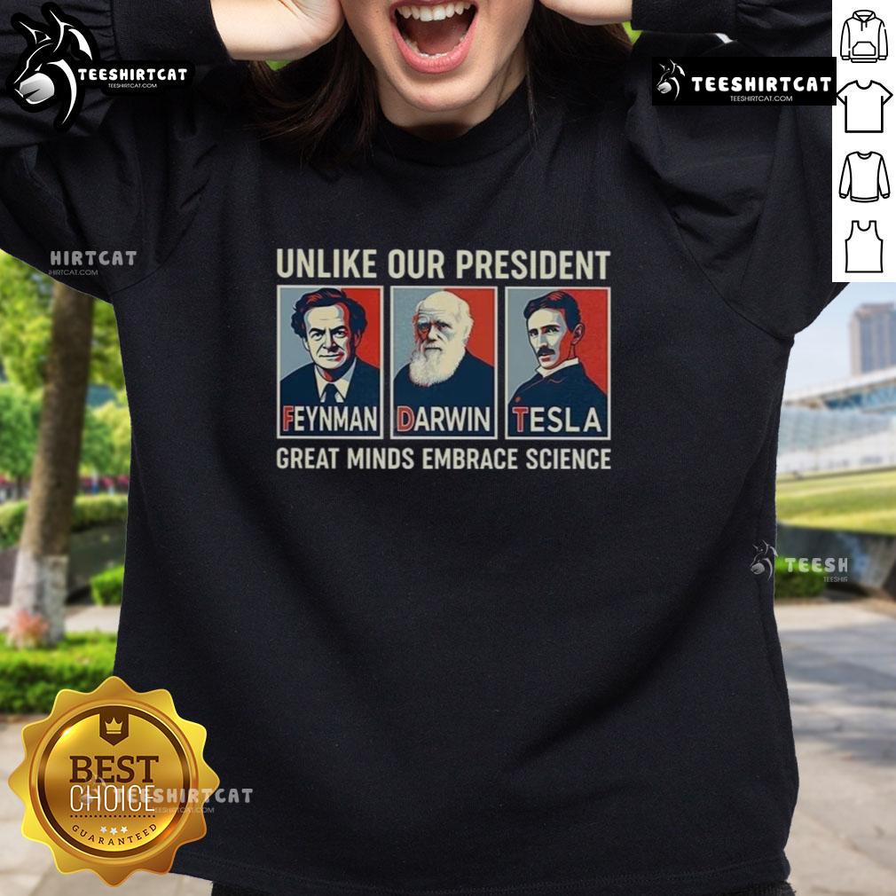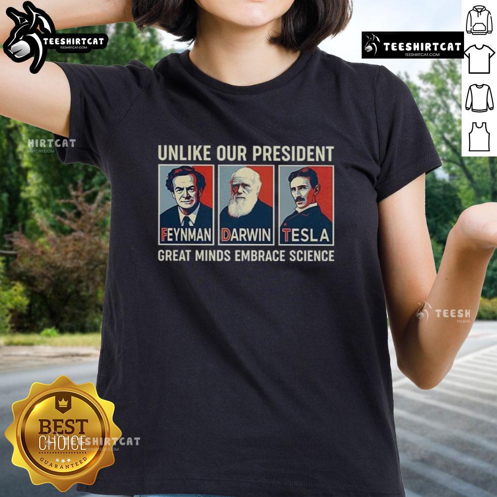 Nice Unlike Our President Feynman Darwin Tesla Great Minds Embrace Science Hope T-Shirt