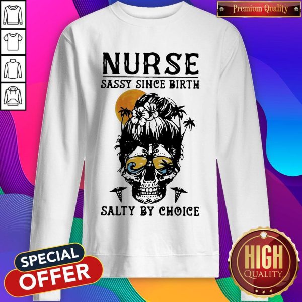 Nurse Sassy Since Birth Salty By Choice Skull Lady Sunset Halloween Shirt