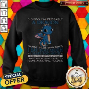 Official 5 Signs I’m Probably A Dragon I Hoard Useless Shiny Things I Eat Too Much I Sleep Too Much I Don’t Like Leaving My Cave Shirt