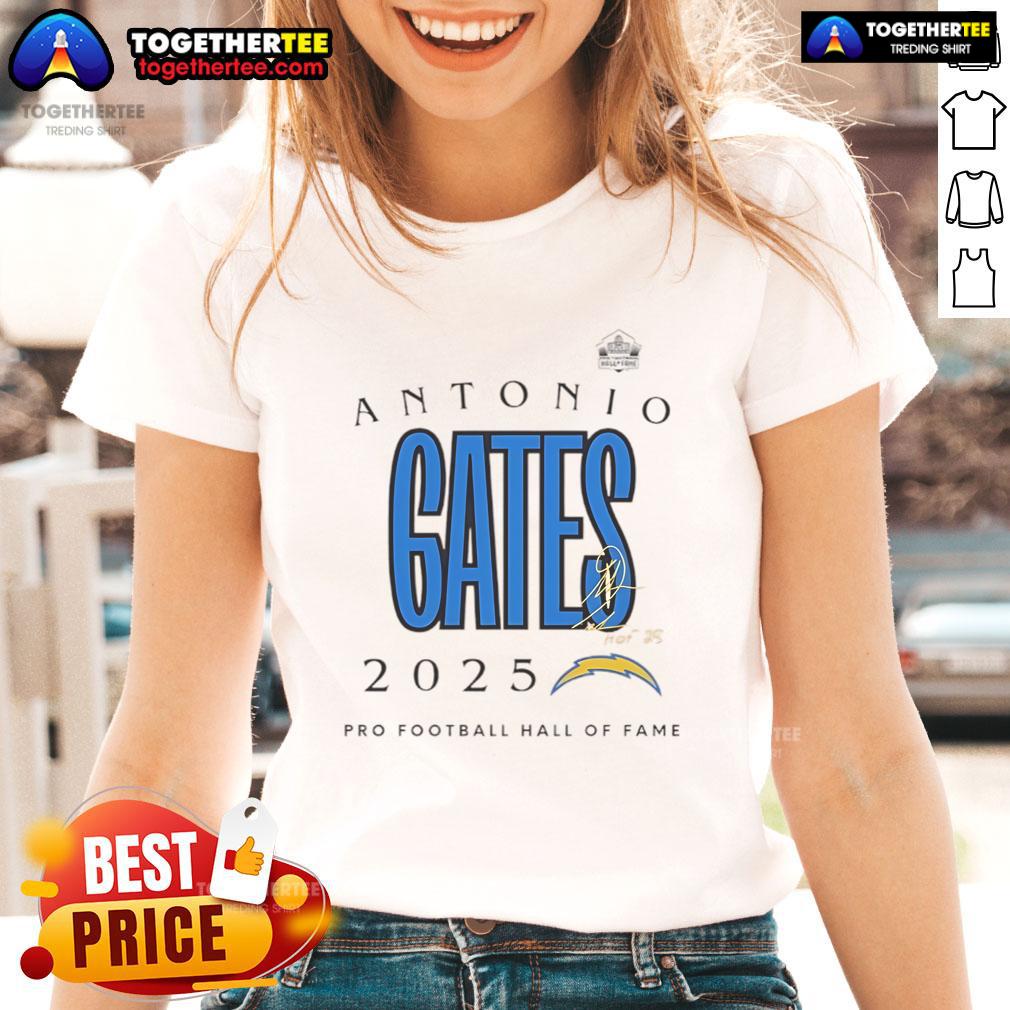 Official Antonio Gates Los Angeles Chargers Pro Football Hall Of Fame 2025 Signature T-Shirt