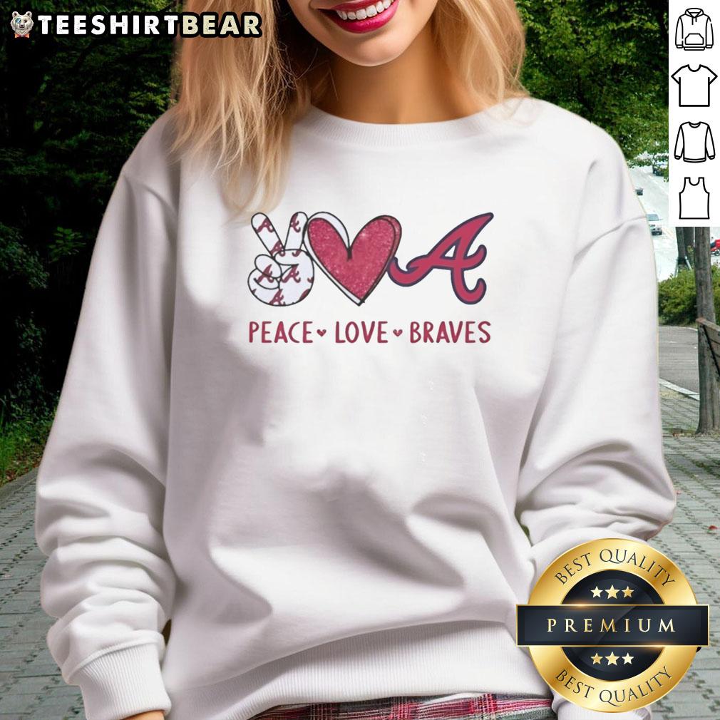 Official Atlanta Braves Peace Love Braves Hand Sign Heart Shape And Logo T-Shirt