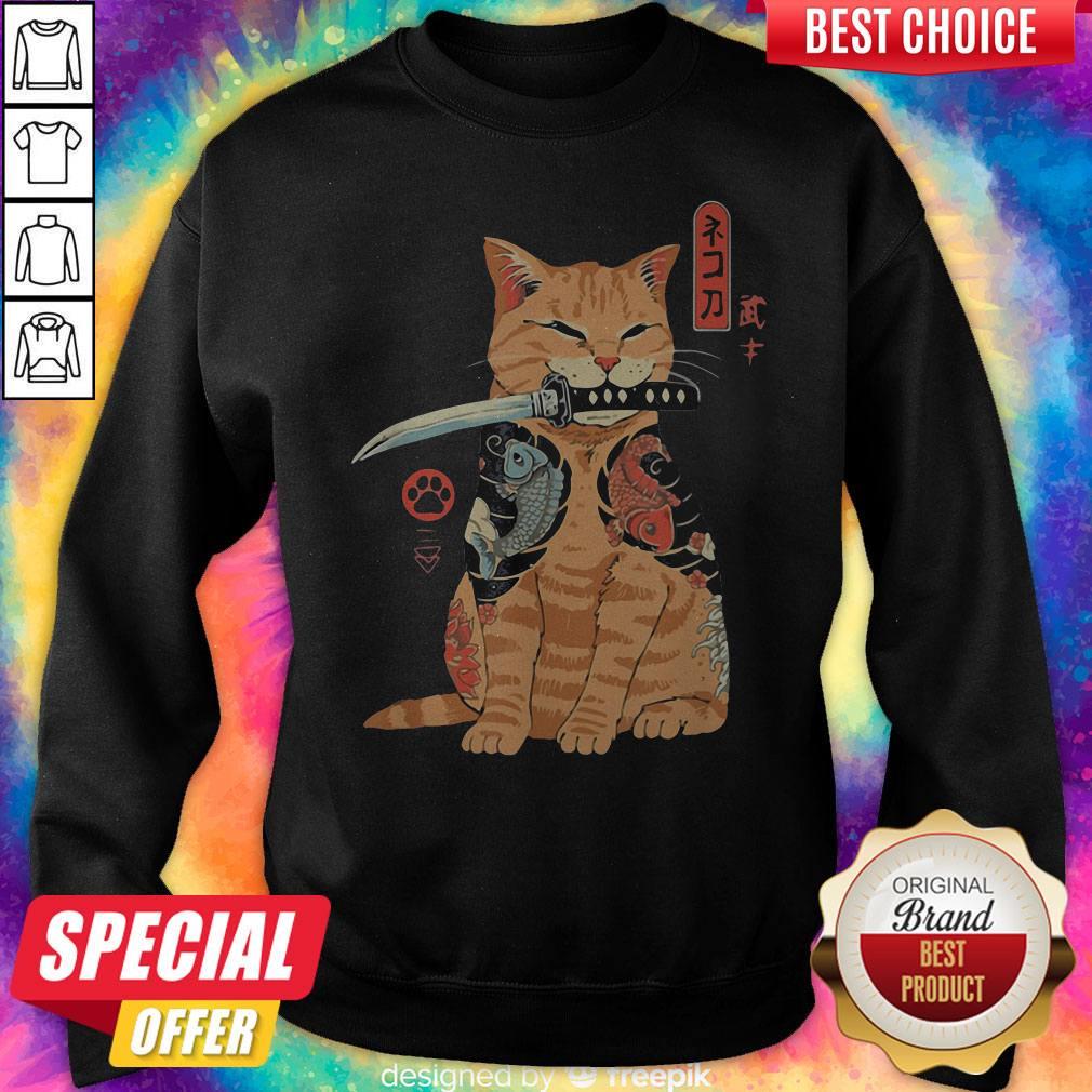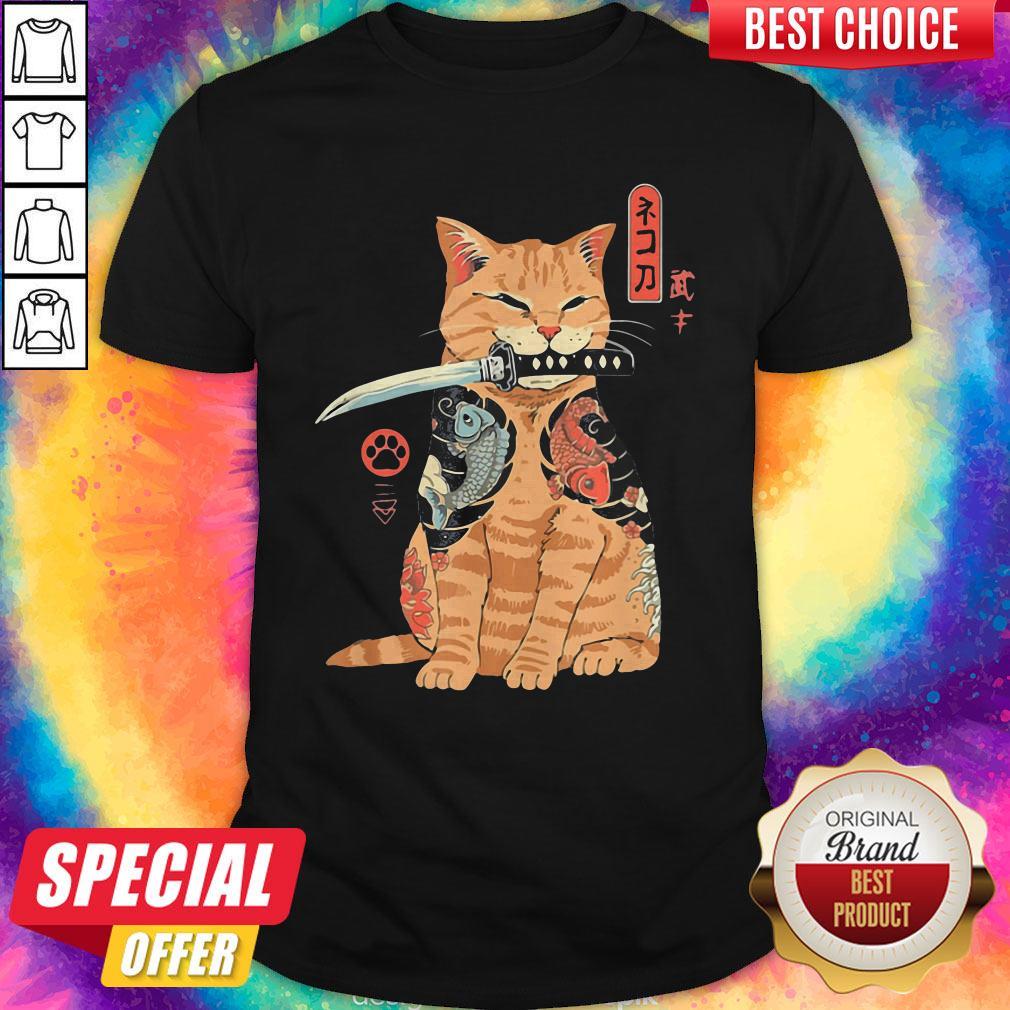 Official Cat Sitting With Katana Japanese Samurai Cat Shirt
