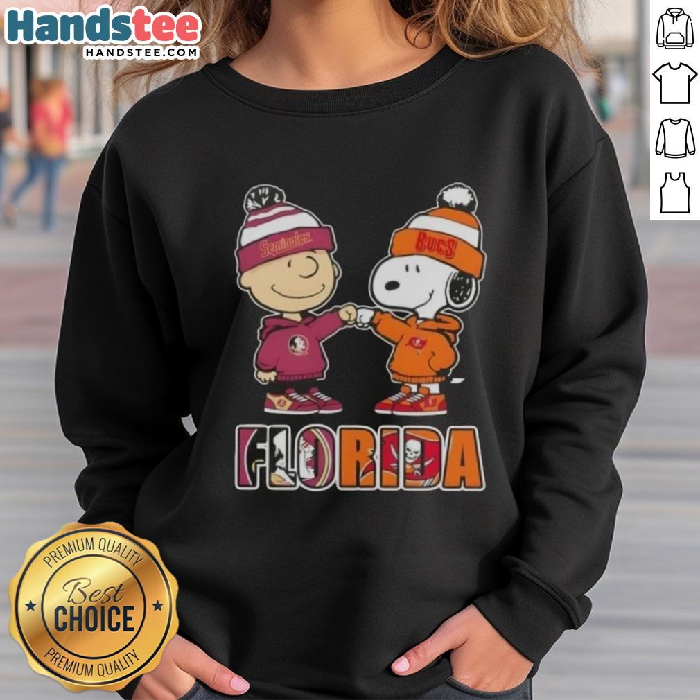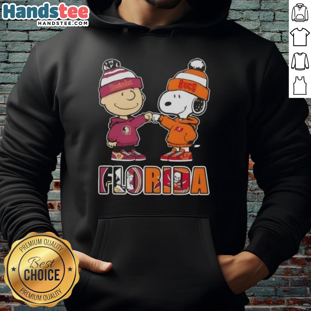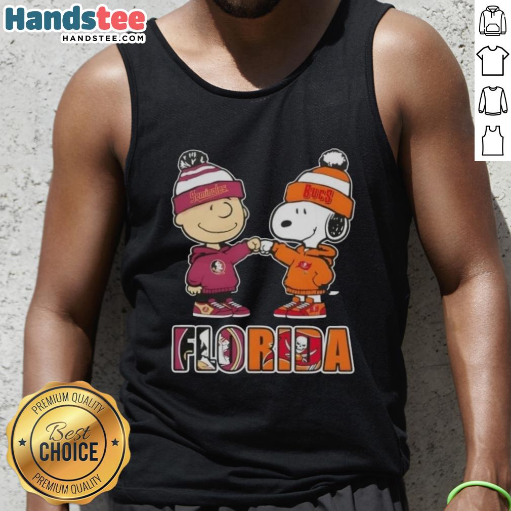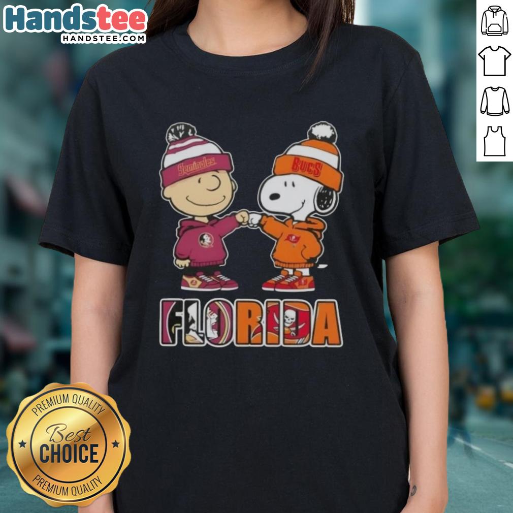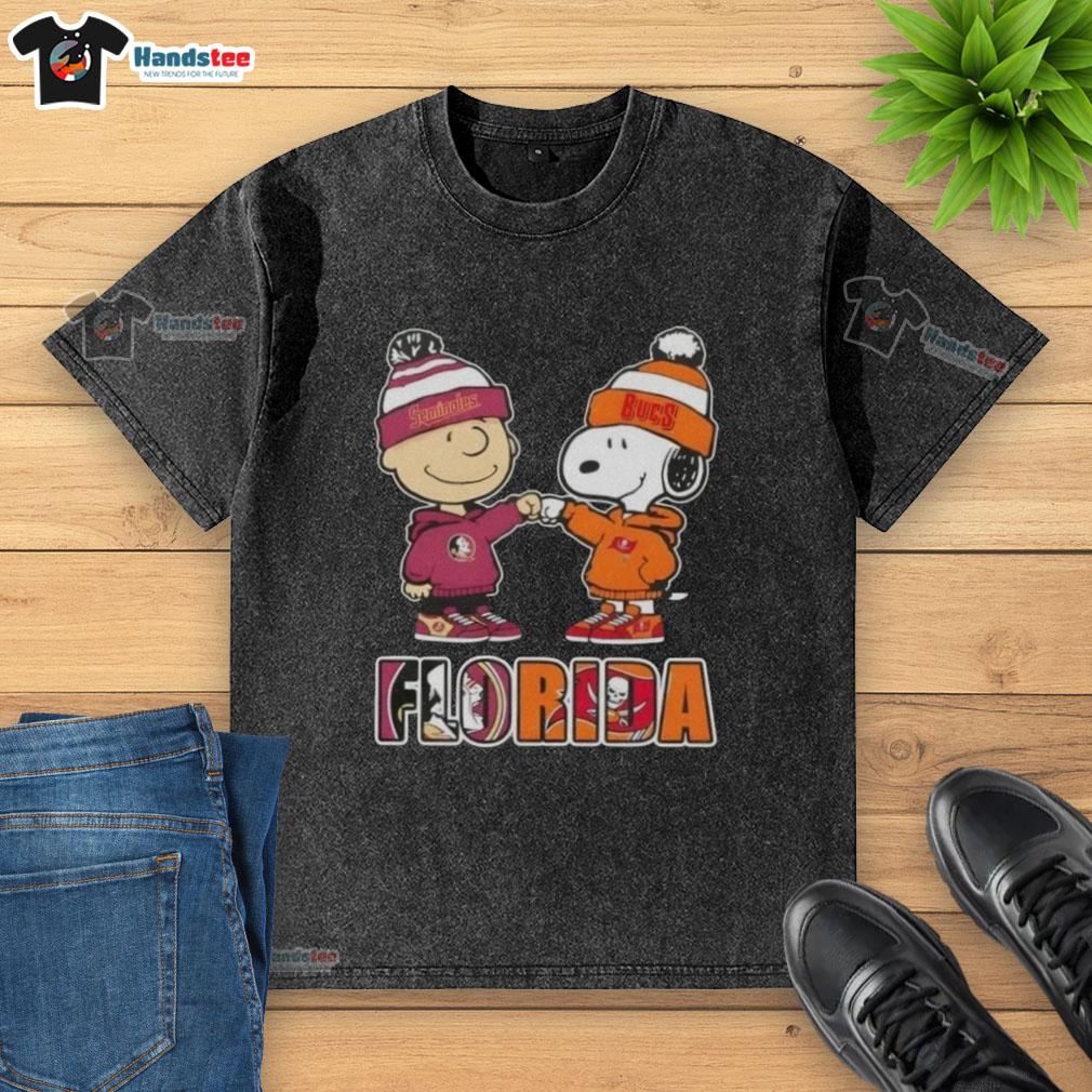 Official Charlie Brown Fist Bump Snoopy Florida City Sports Seminoles X Tampa Bay Buccaneers T-Shirt