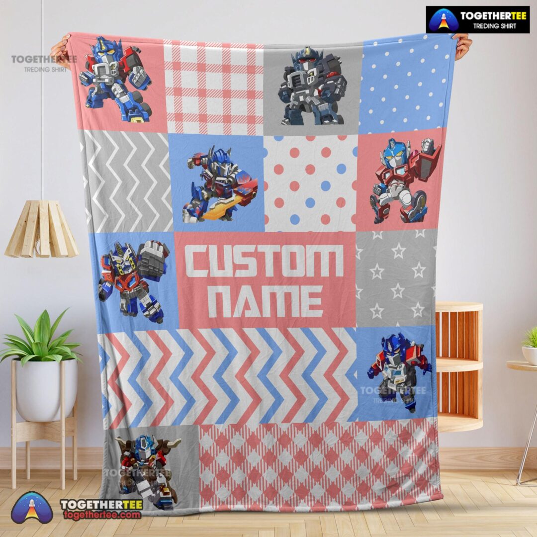 Official Chibi Optimus Prime Transformers Pattern Blanket Fleece Customized Blanket