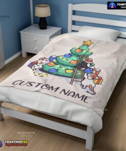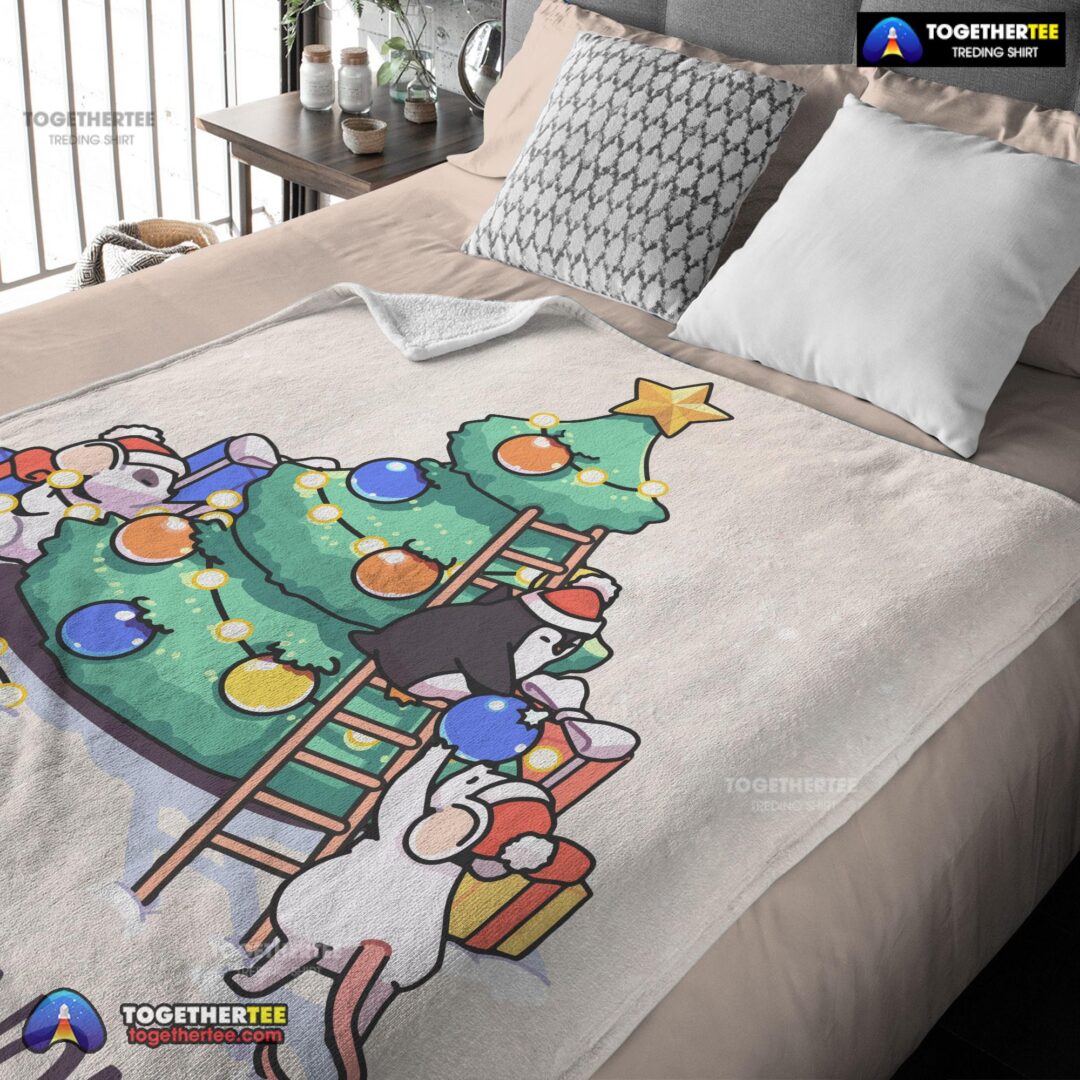 Official Cute Mice & Penguin Cartoon Christmas Tree Blanket Fleece Customized Blanket
