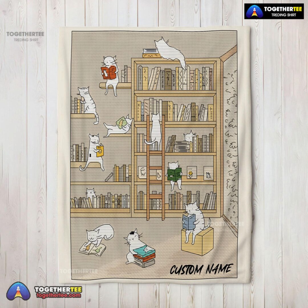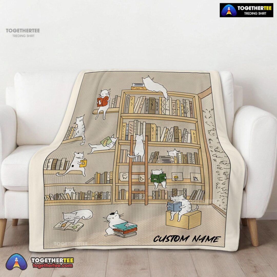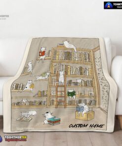 Official Cute Vintage Minimalist Cat Book Reading Blanket Fleece Customized Blanket