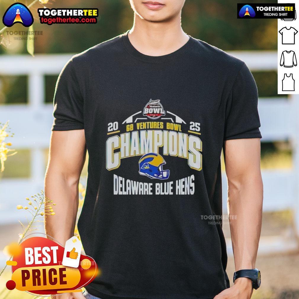 Official Delaware Blue Hens 2025 68 Ventures Bowl Champions Helmet T-Shirt