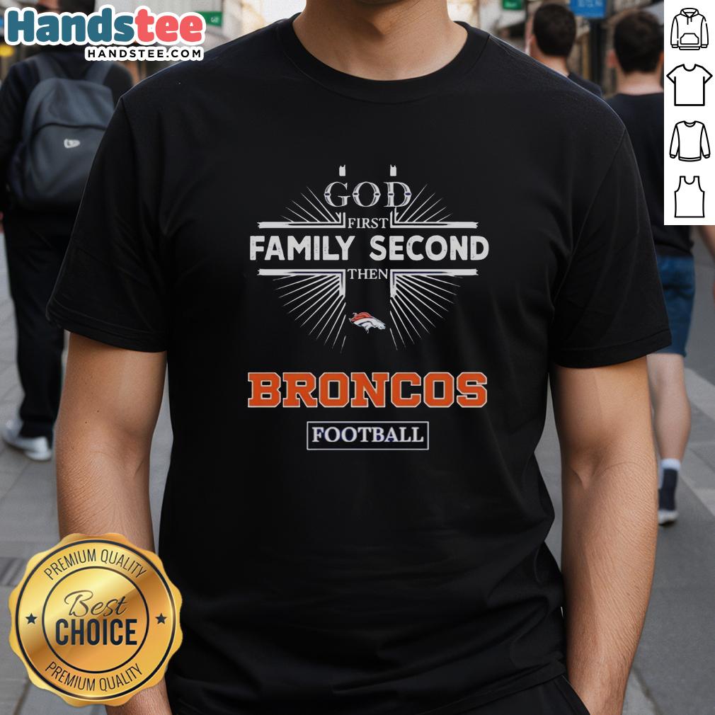 Official Denver Broncos God First Family Second Then Broncos Football T-Shirt
